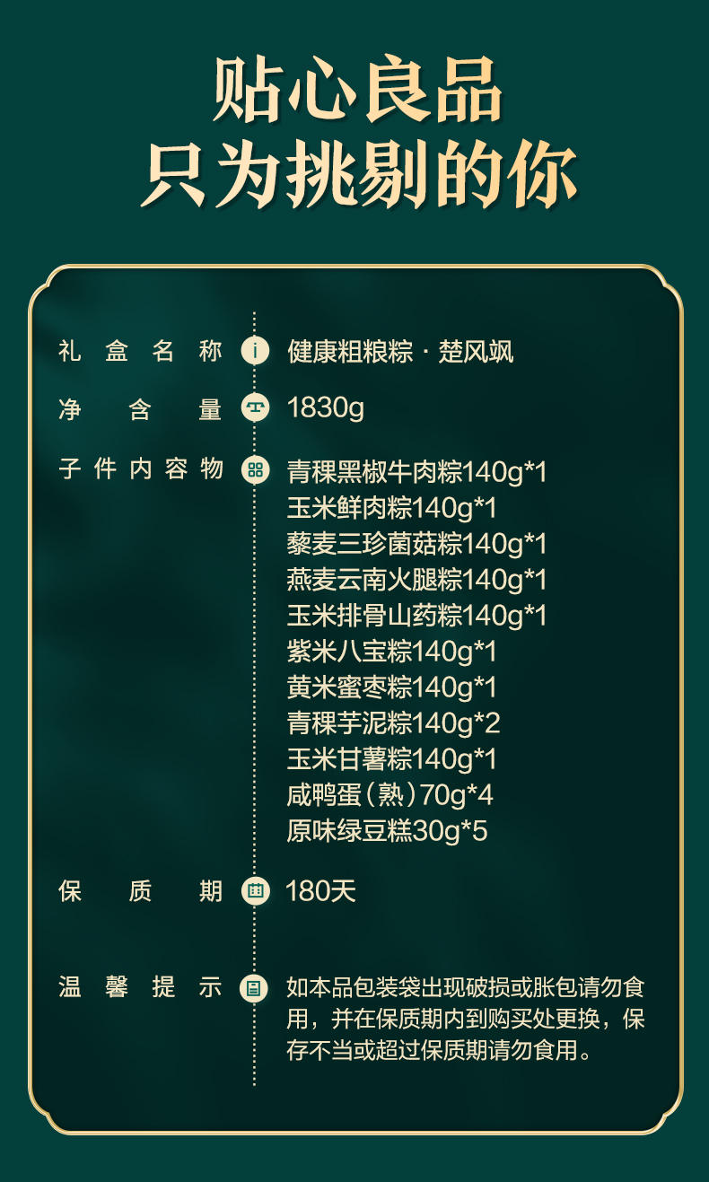 商品名称:良品铺子 1830g 健康粗粮粽·楚风飒(单位:盒)
