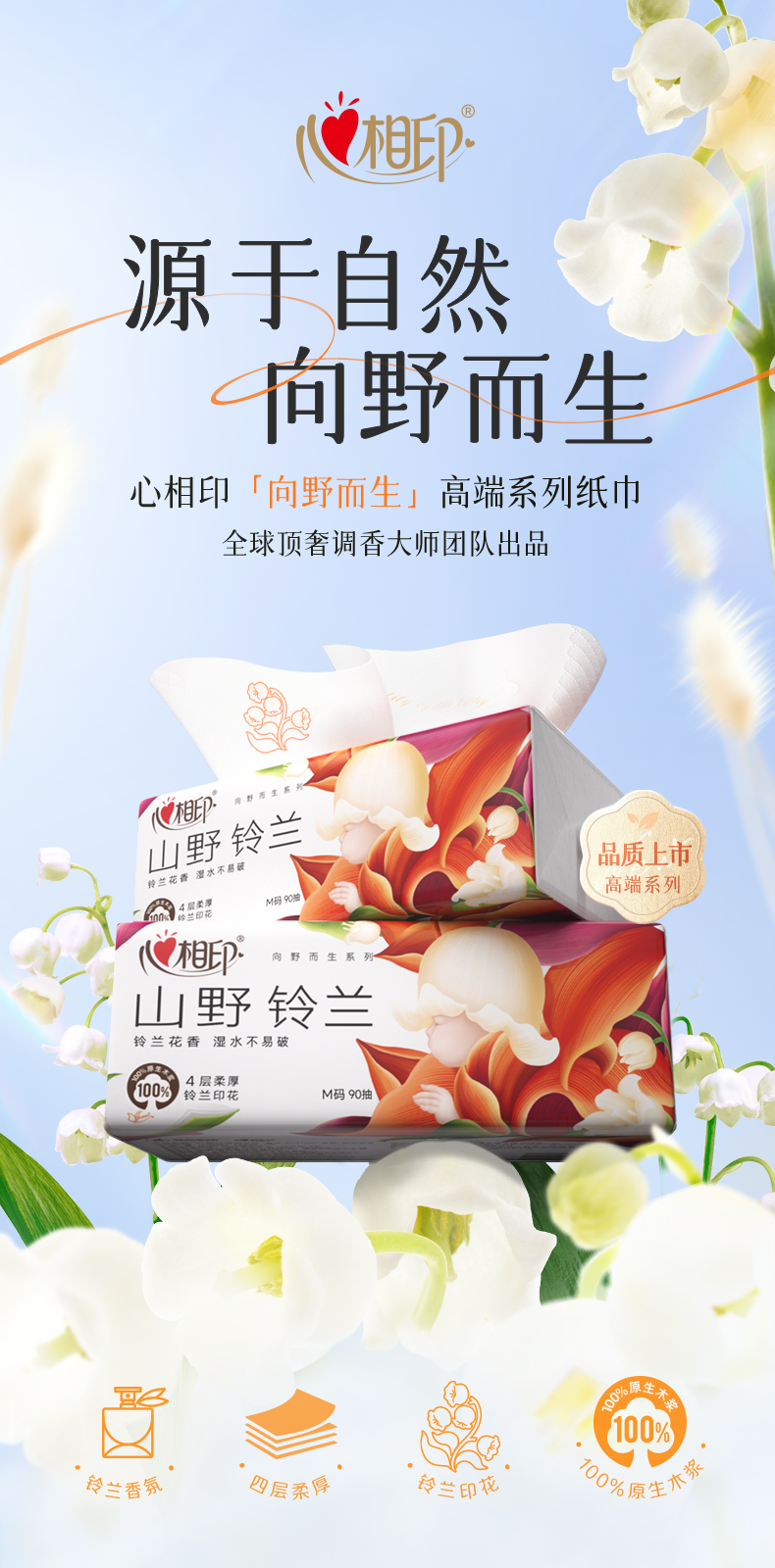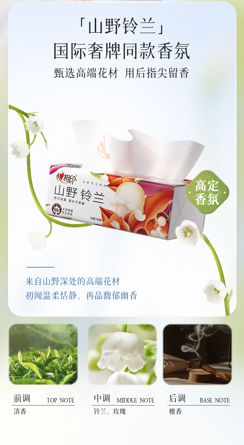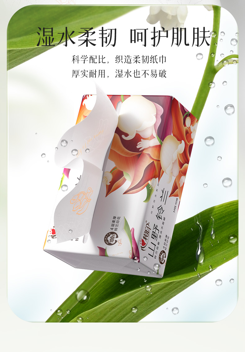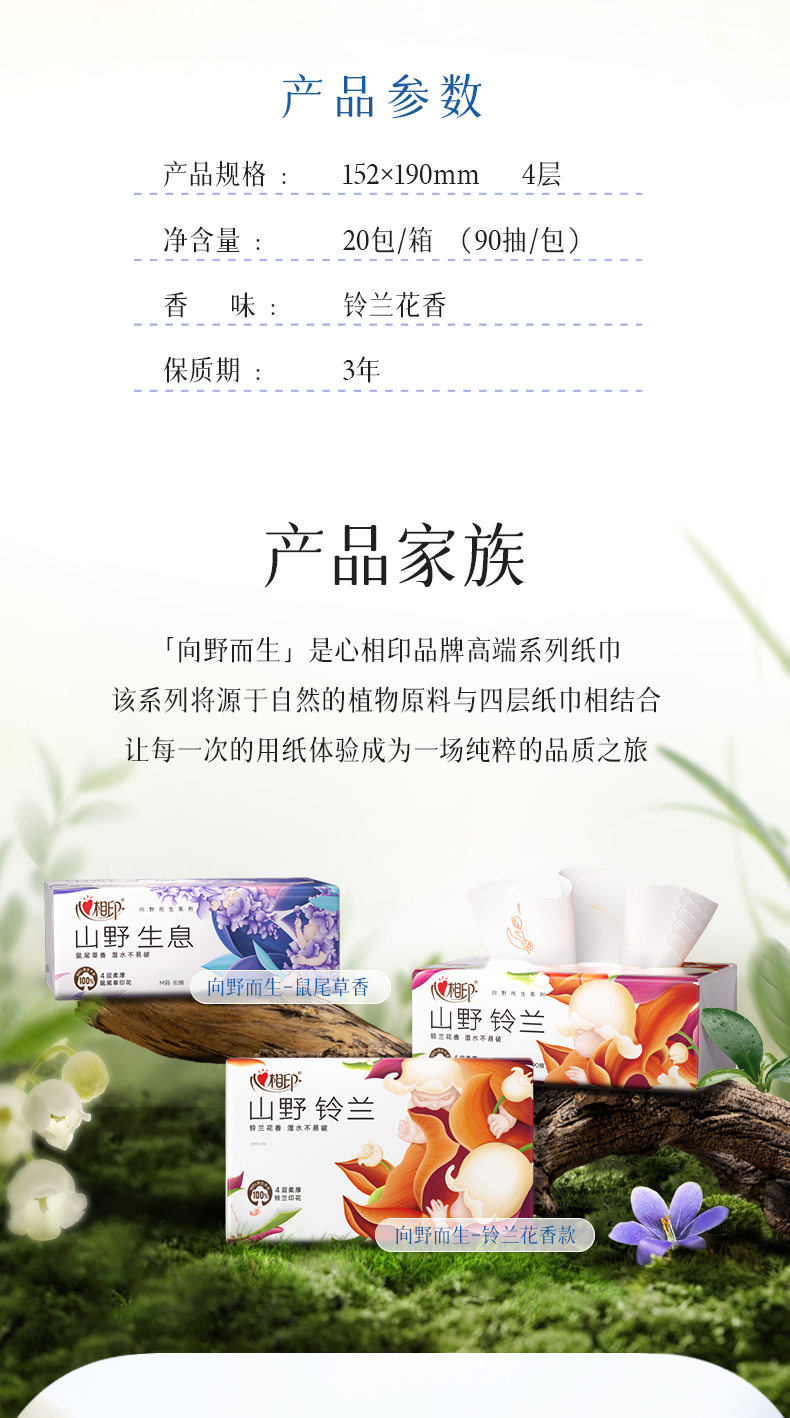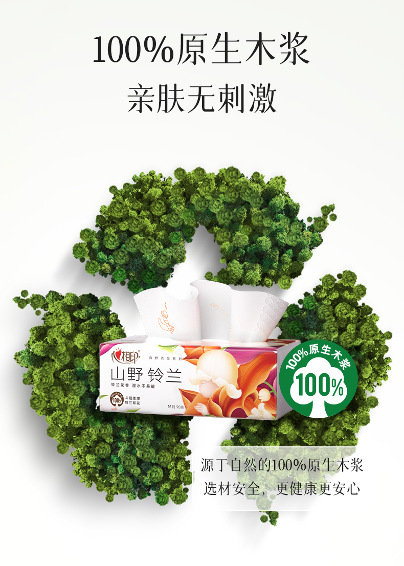 商品名称:DT41090(箱装)心相印向野而生90抽20包四层塑装面巾纸(铃兰印花)(单位:箱)A0001917
