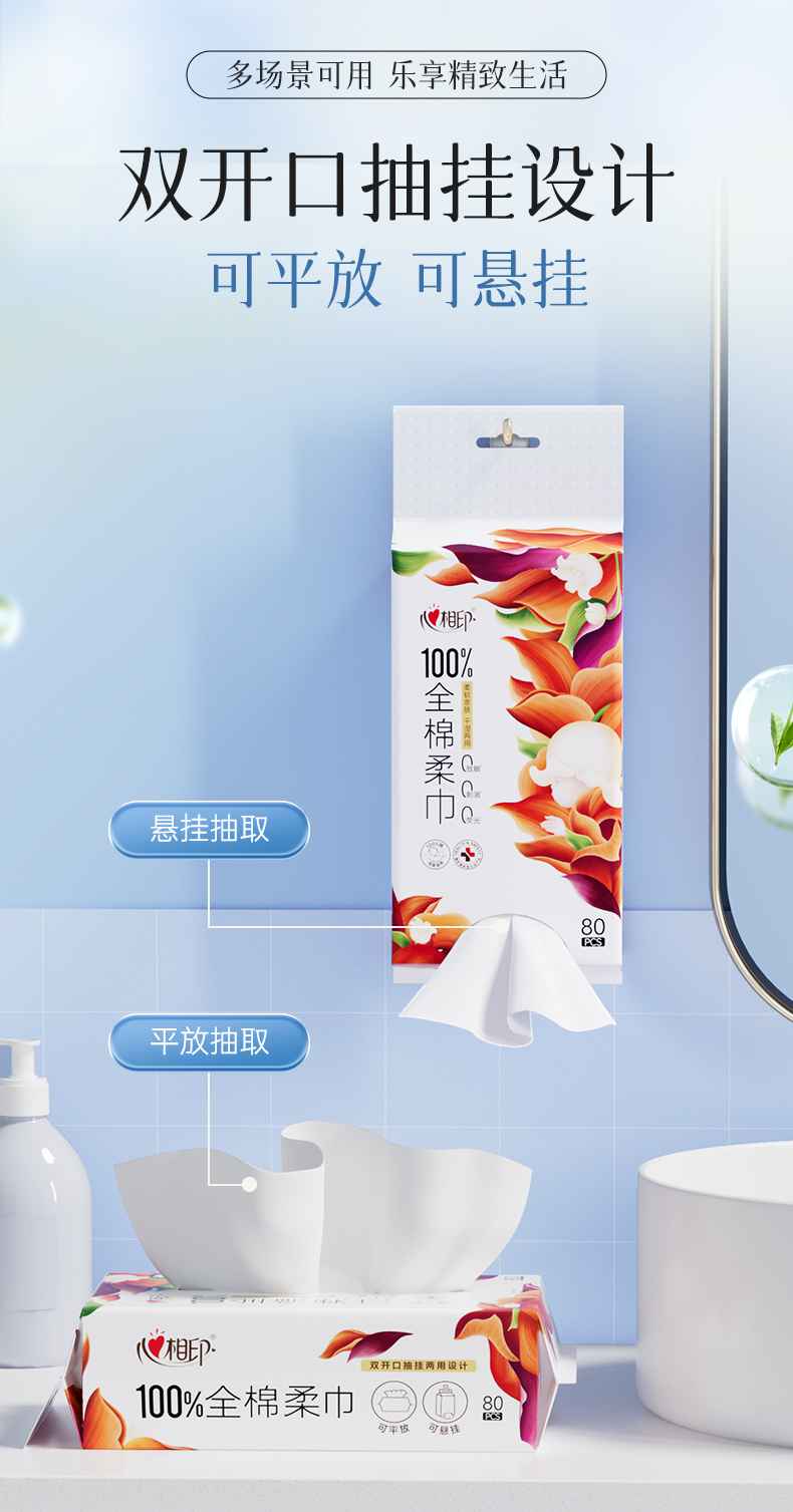 商品名称:XCK080(单包)心相印纯棉系列80片装洗脸巾(双开口随心抽)(单位:包)ZXA0002354