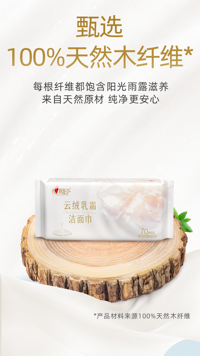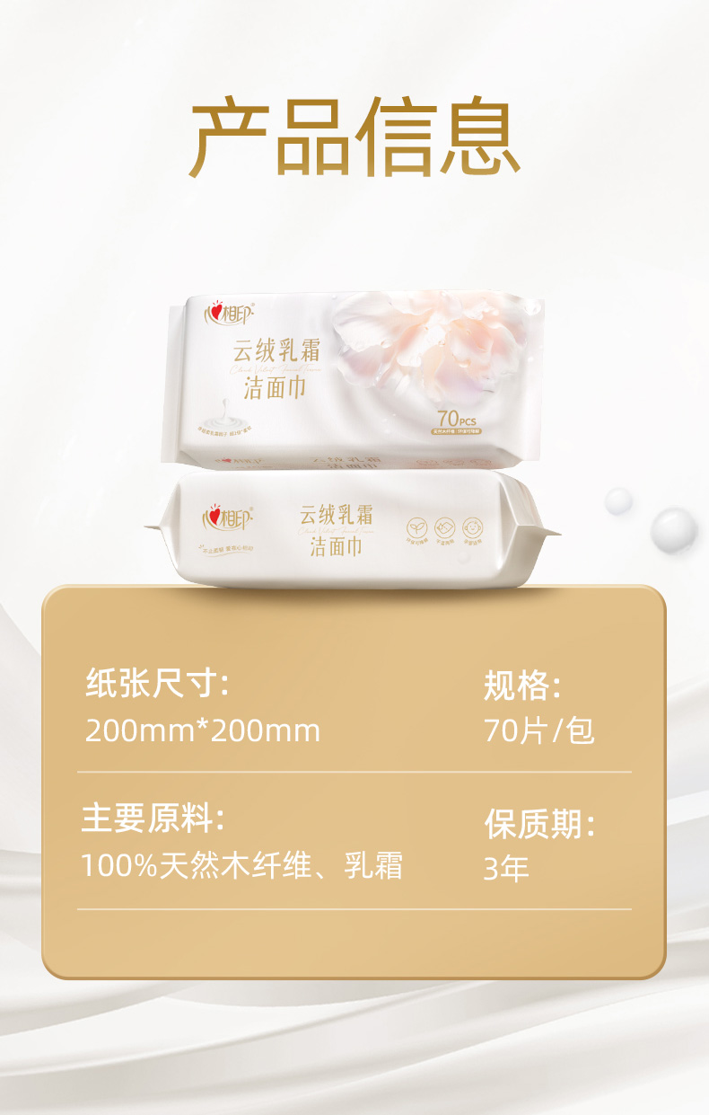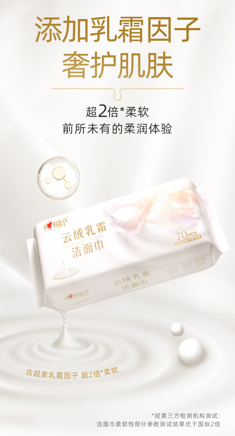 商品名称:2XCE070(包装)心相印棉柔系列云绒乳霜柔巾70片装*2包(单位:包)ZTA0001173
