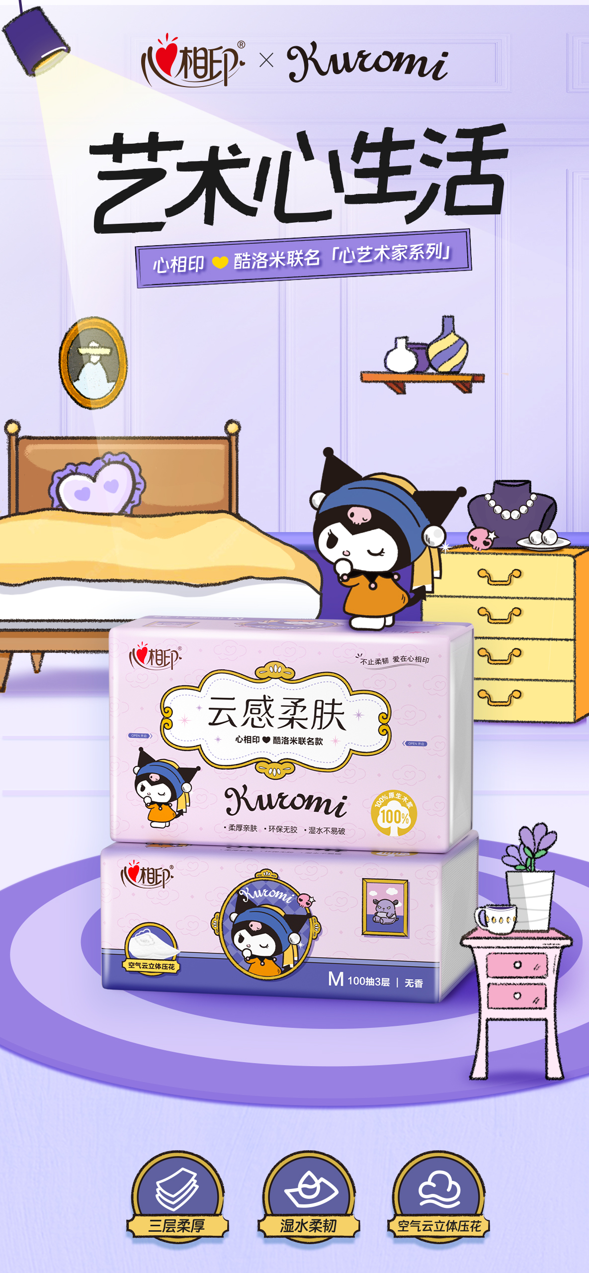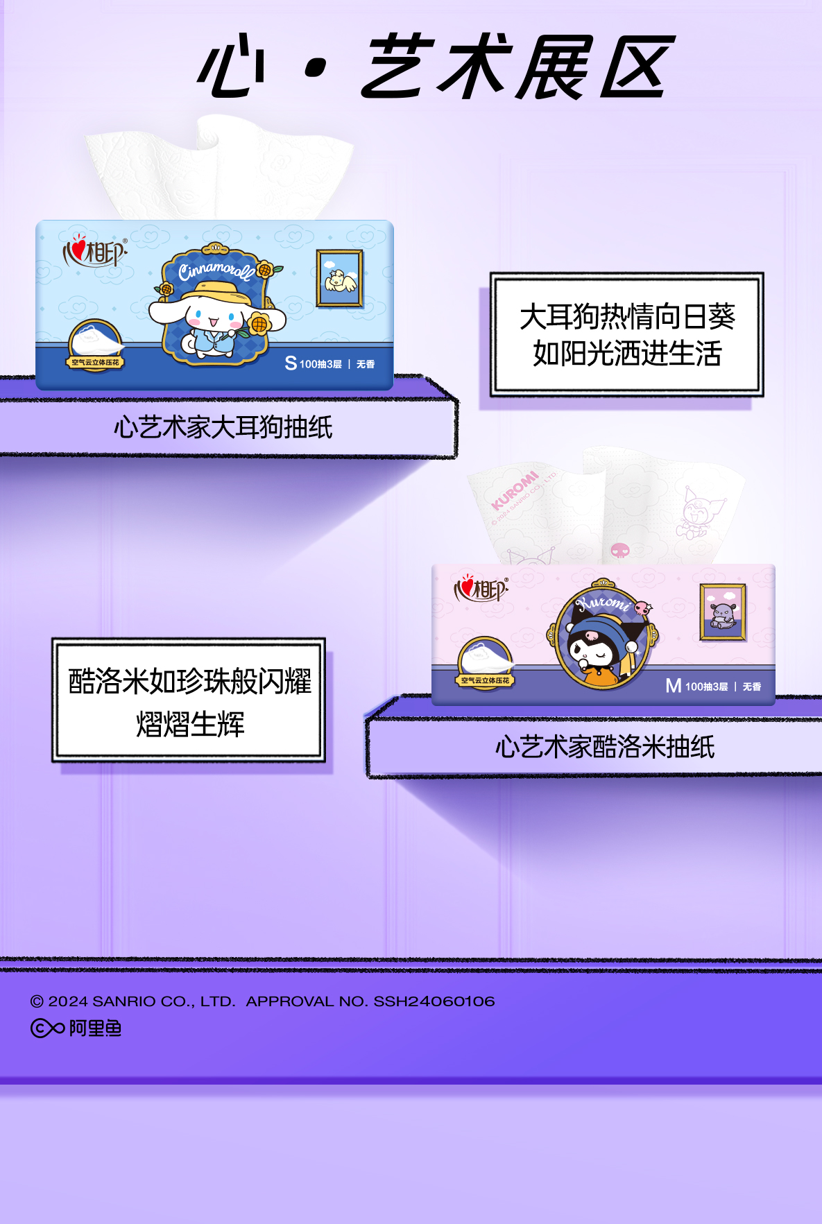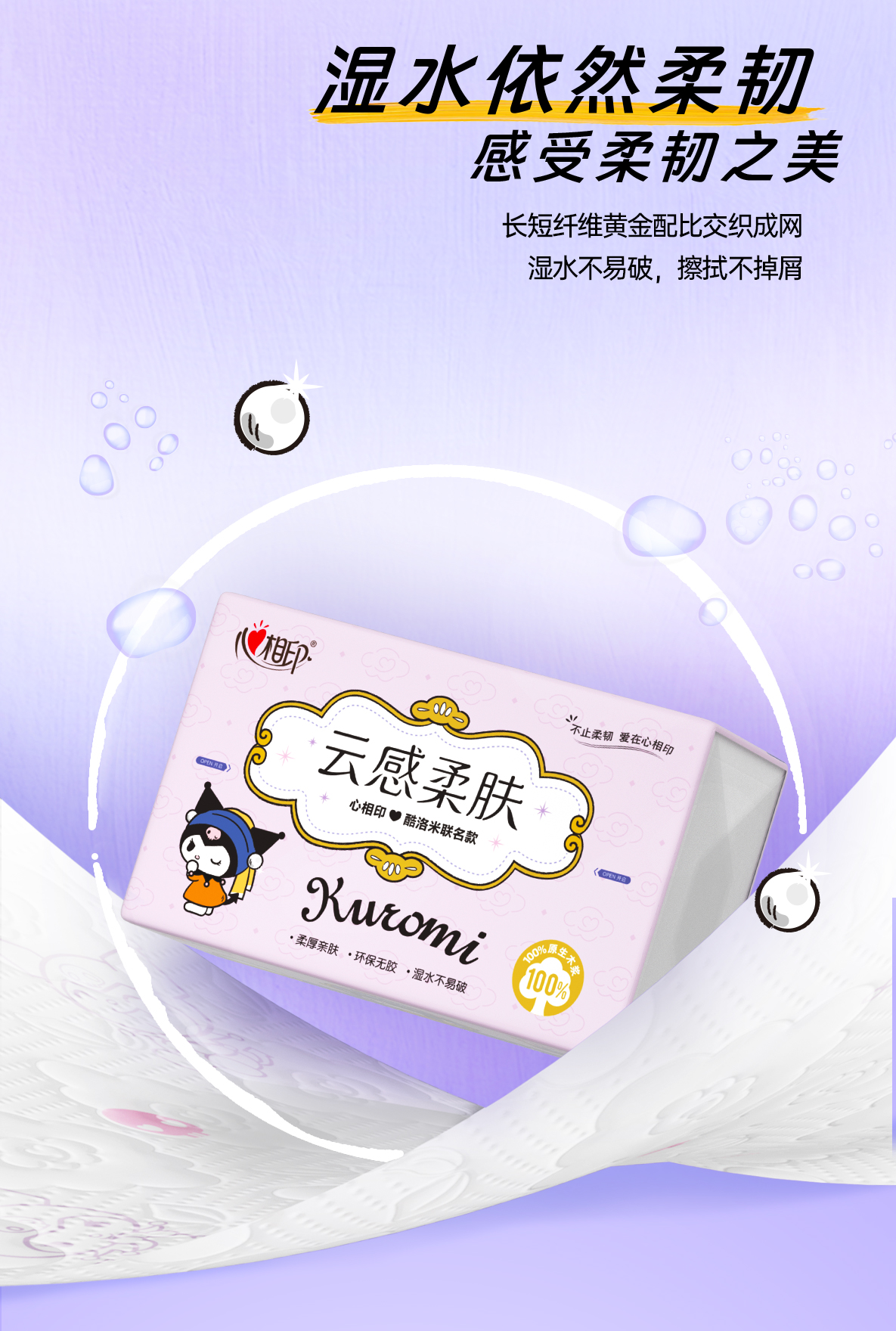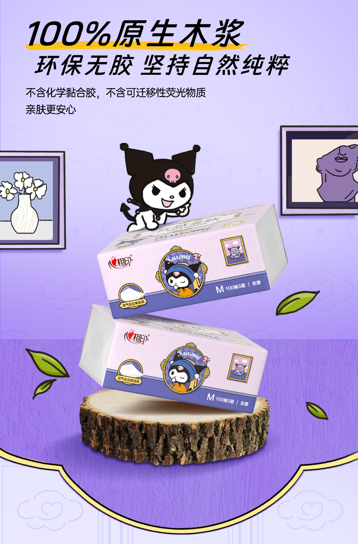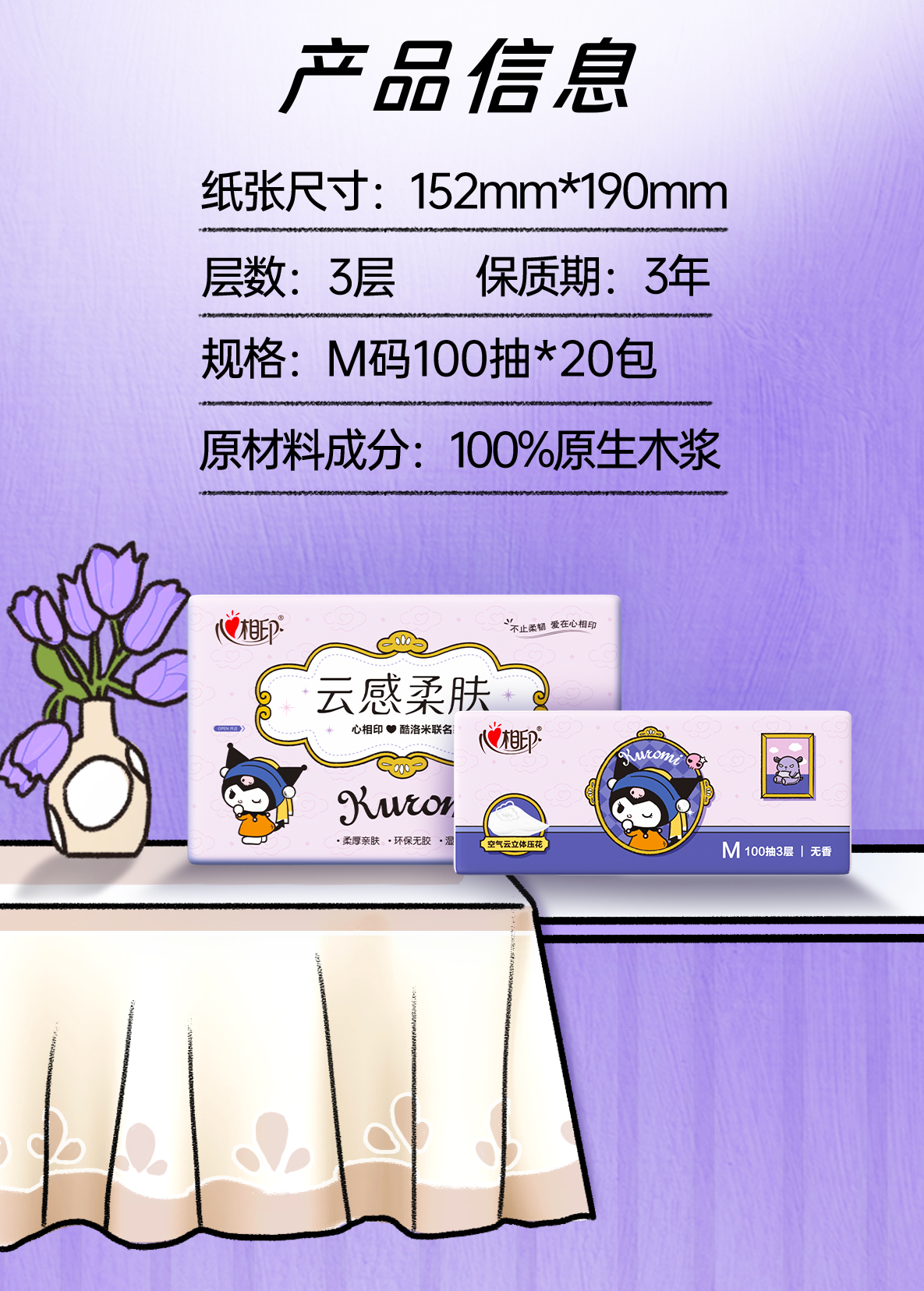 商品名称:DT18100(箱装)心相印云感100抽20包三层立体压花塑装面巾纸三丽鸥联名款(M码)(单位:箱)A0001656