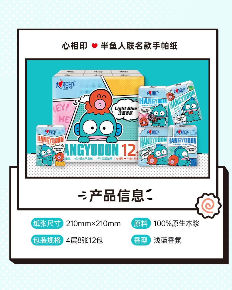 商品名称:PC3212(单条)心相印IP款12包装四层手帕纸(印花)(单位:条)ZXA0000973