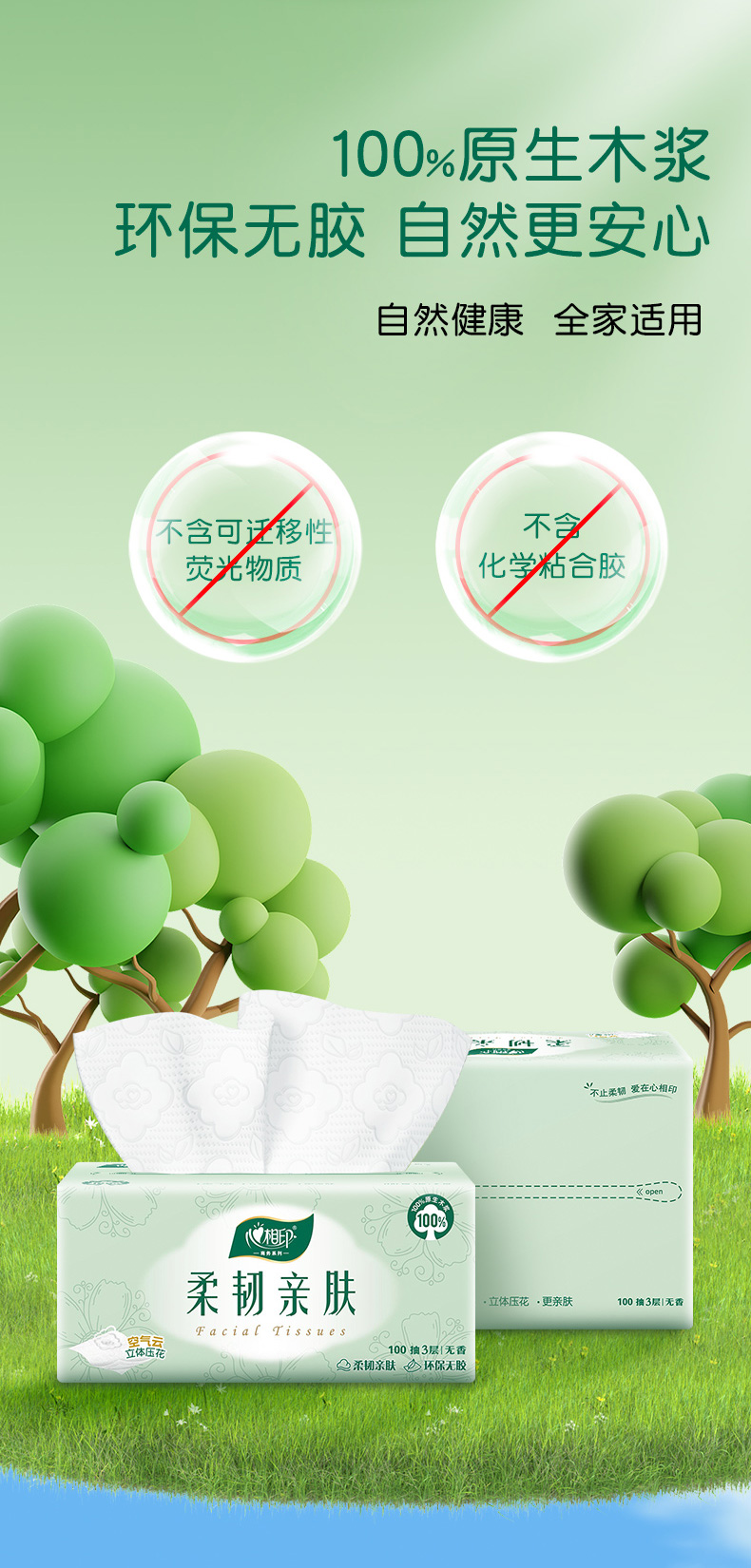 商品名称:DT100(箱装)心相印云感柔韧亲肤三层100抽18包塑装抽纸(6包*3提)(单位:箱)A0002417