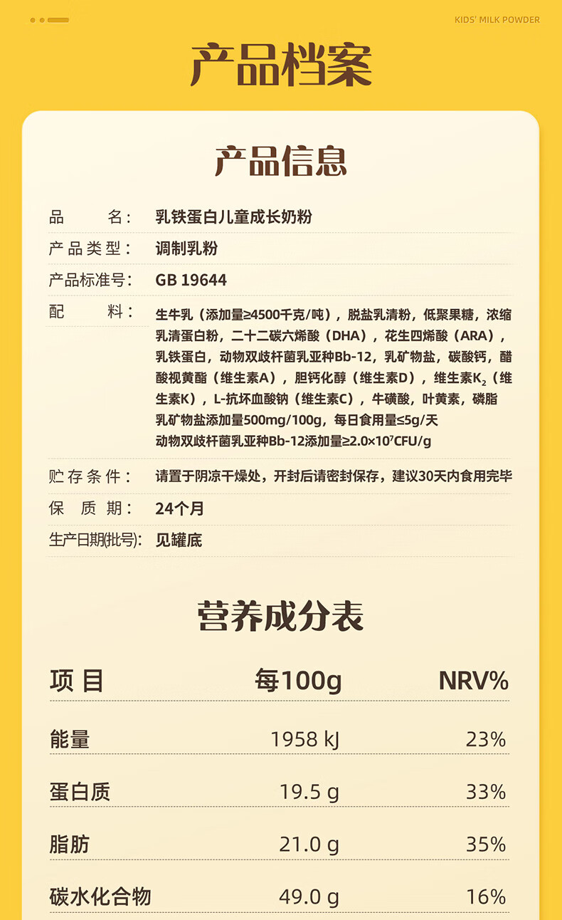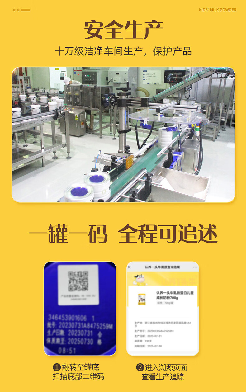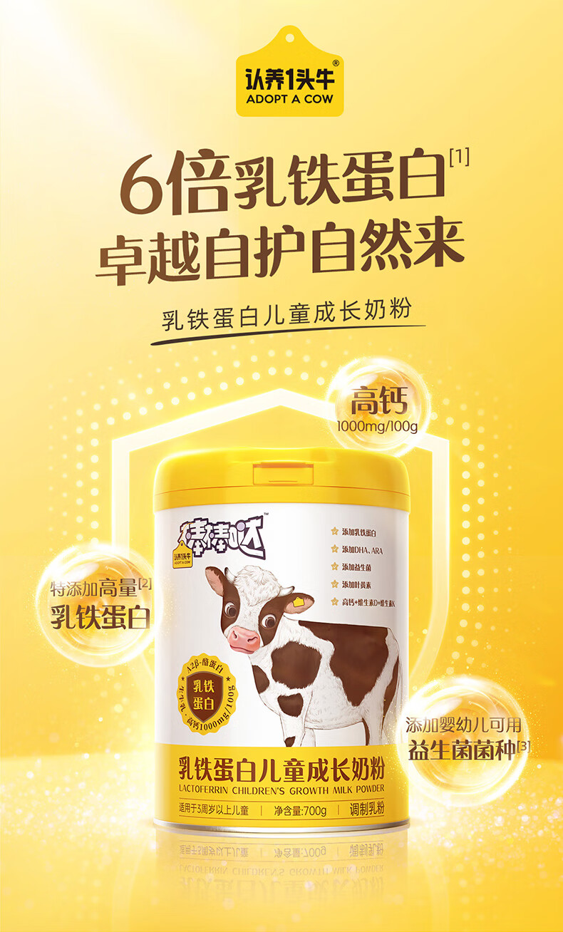 商品名称:认养一头牛 110303000404 乳铁蛋白儿童成长奶粉700g(单位:罐)