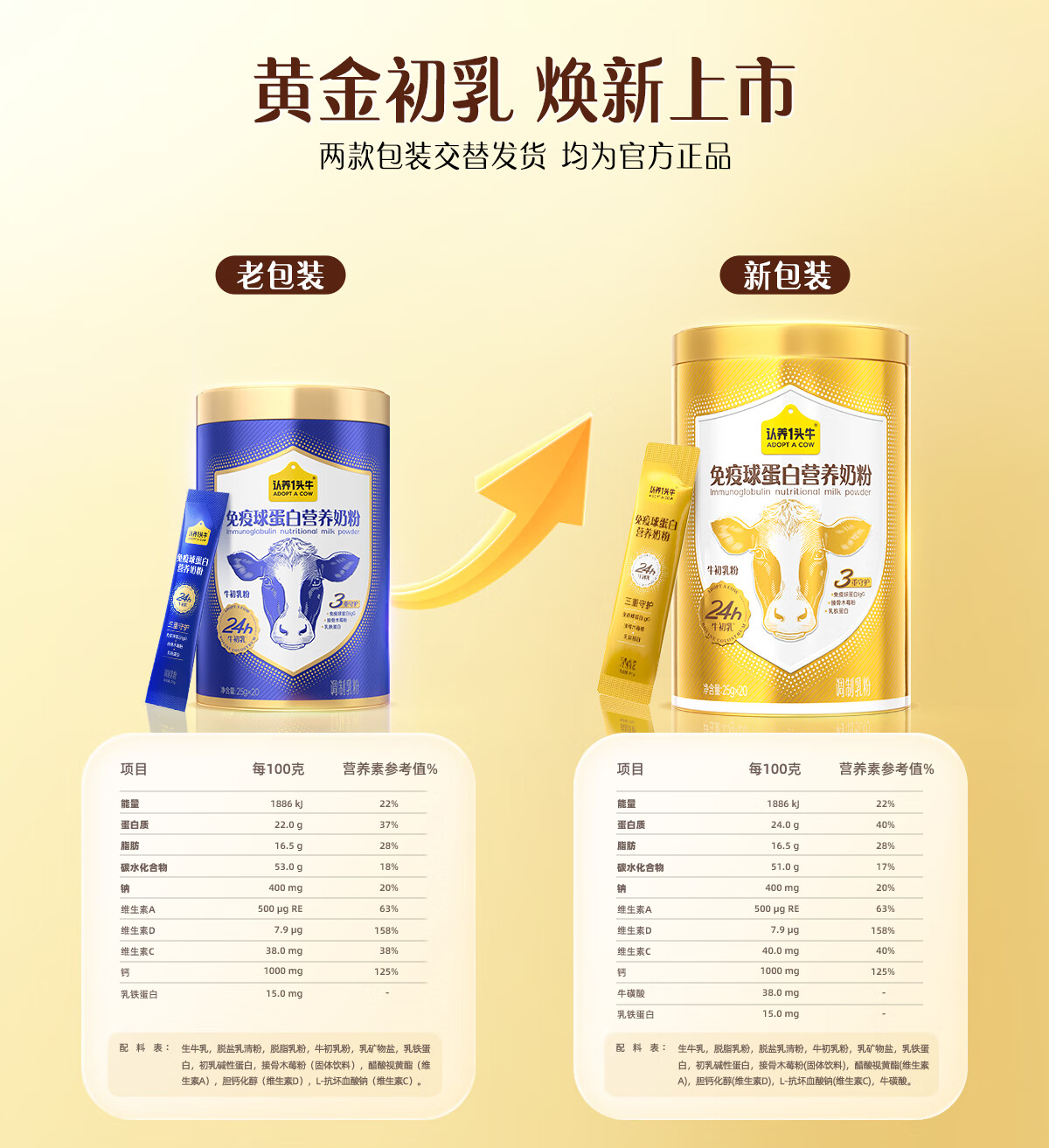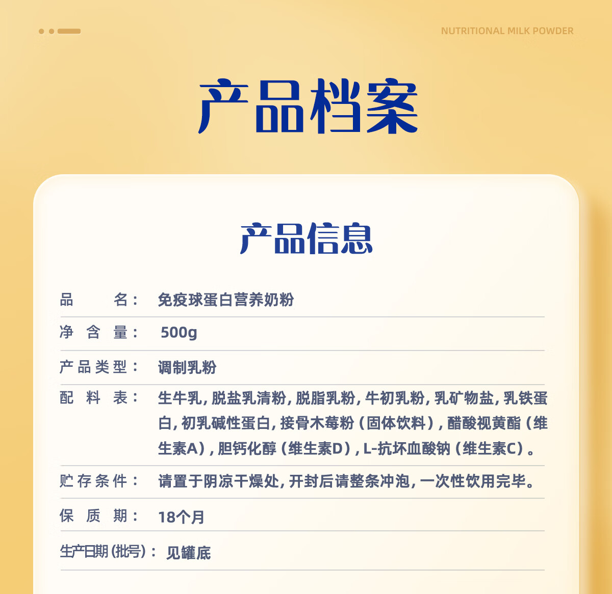 商品名称:认养一头牛 110301000698 免疫球蛋白营养奶粉500g(单位:罐)