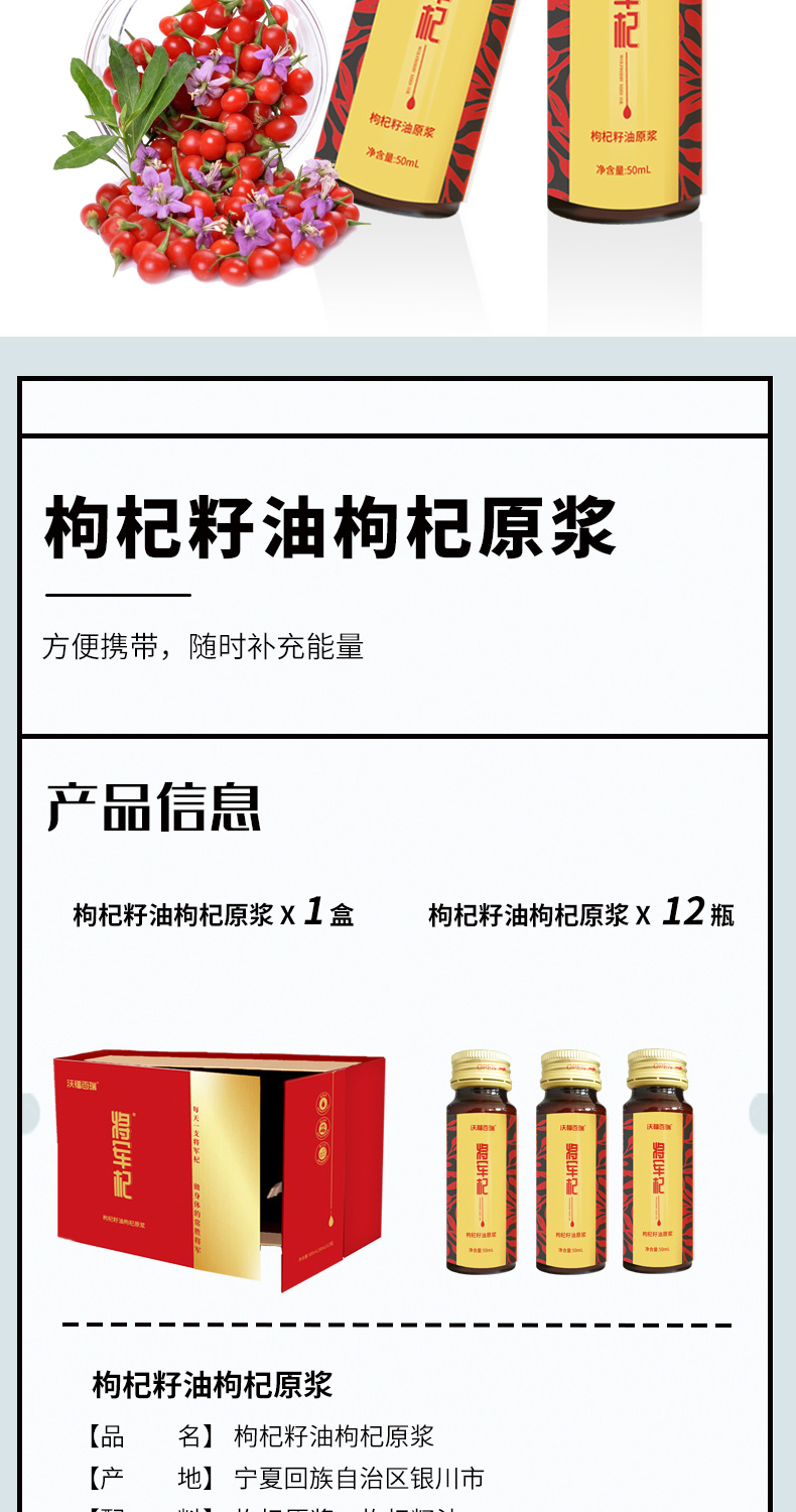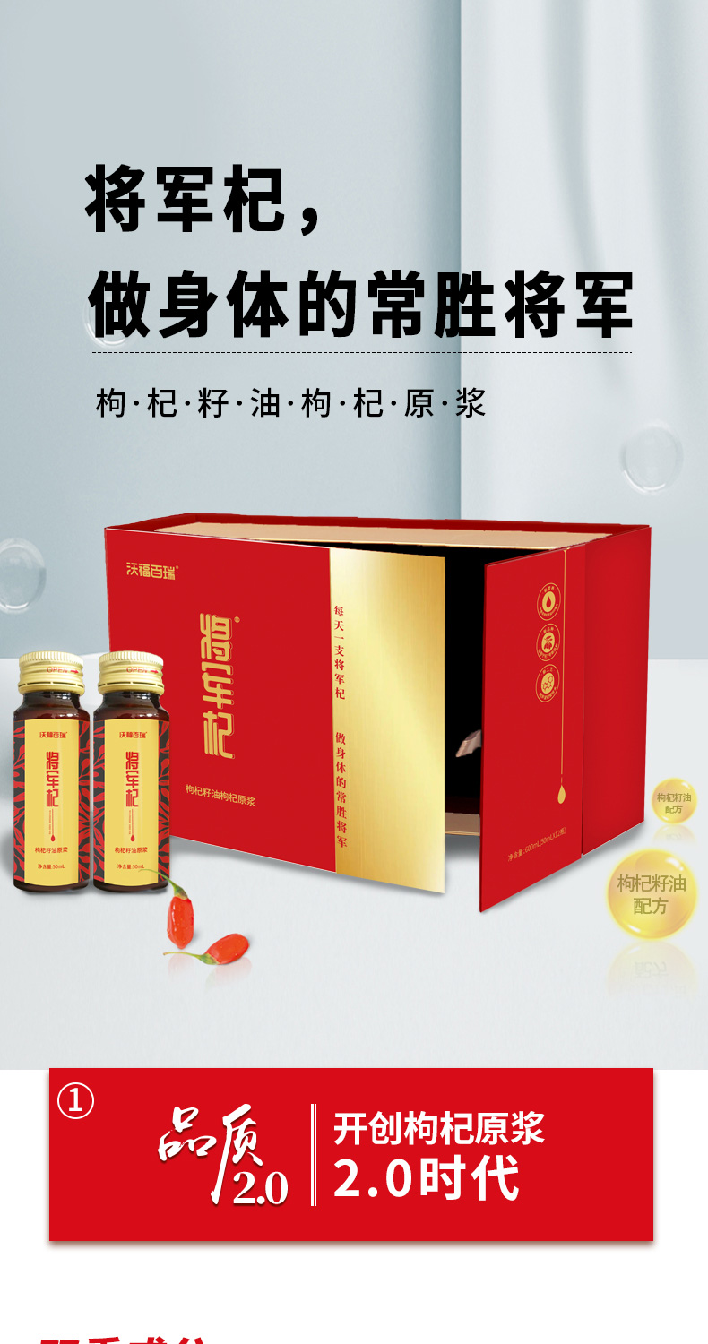 商品名称:沃福百瑞 WFBR-1457 将军杞·枸杞籽油原浆礼盒装50ml*12瓶(单位:盒)