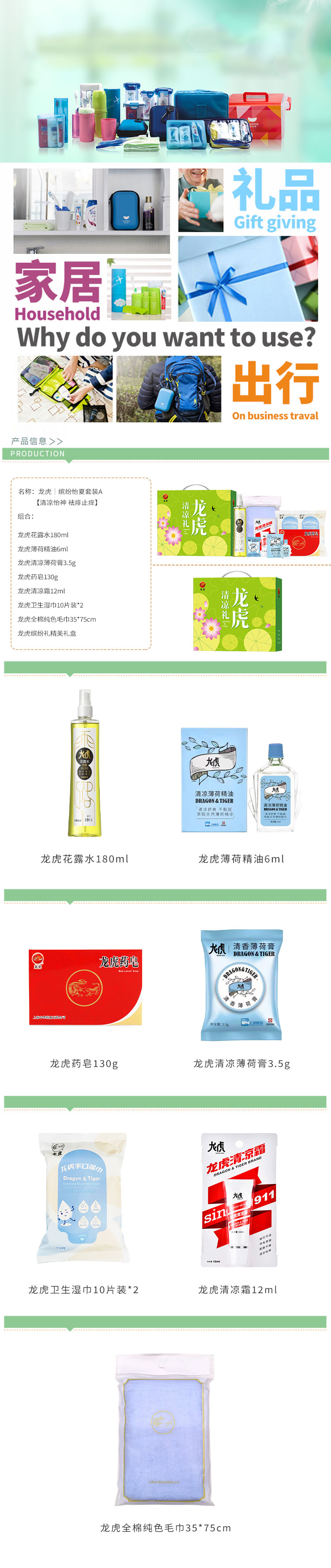 花露水180ml 薄荷精油6ml薄荷膏3.5g药皂130g清凉霜12ml卫生湿巾10片装*2全棉纯色毛巾35*75cm 缤纷礼精美礼盒