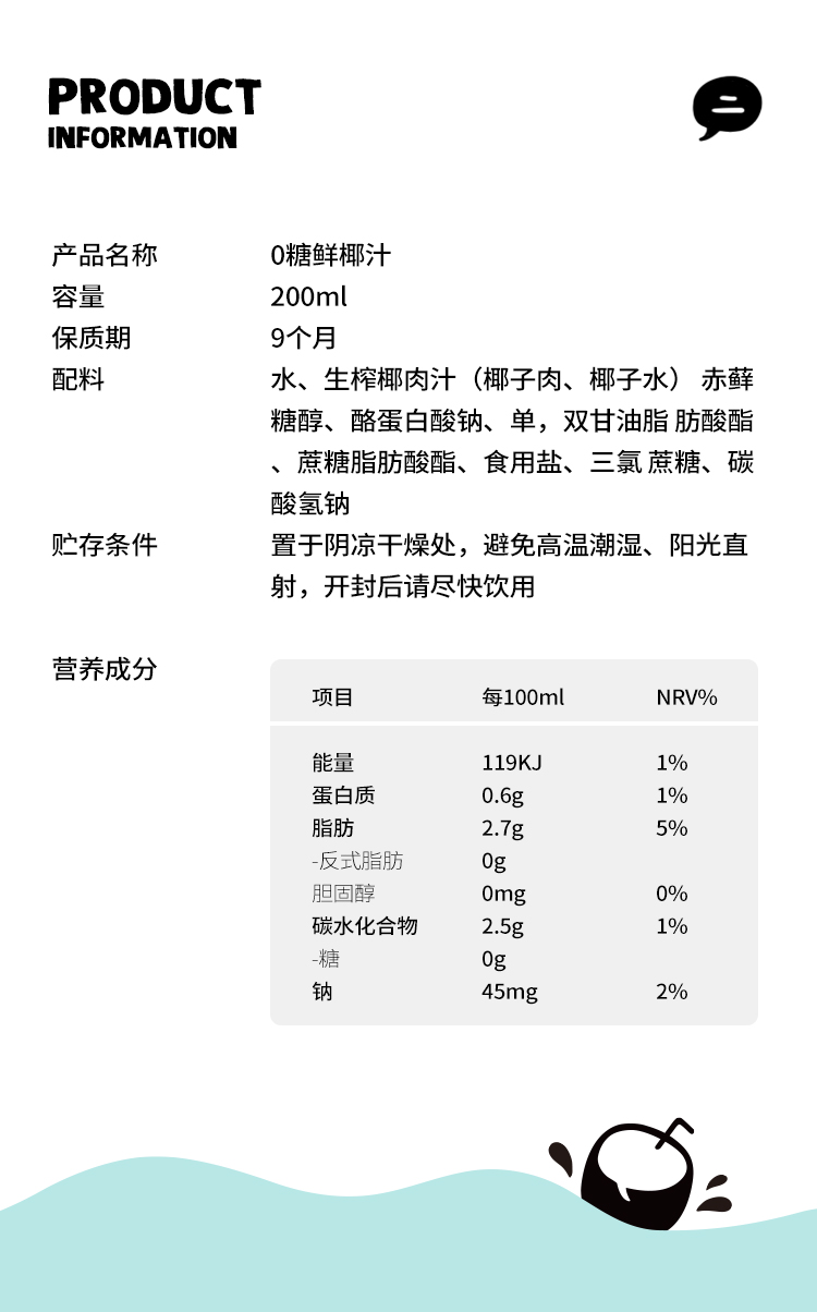 商品名称:椰子知道0糖鲜椰汁200ml*9
