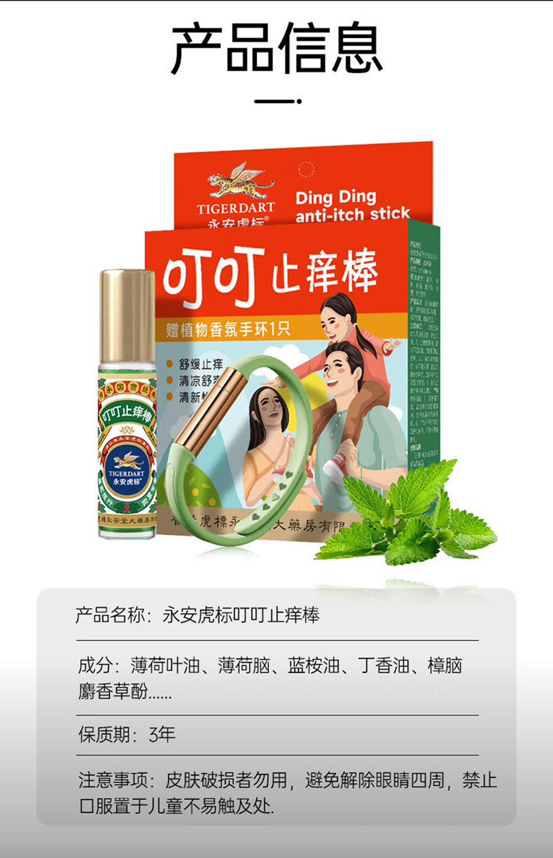 商品名称:永安虎标-叮叮止痒棒10ml+植物香氛手环