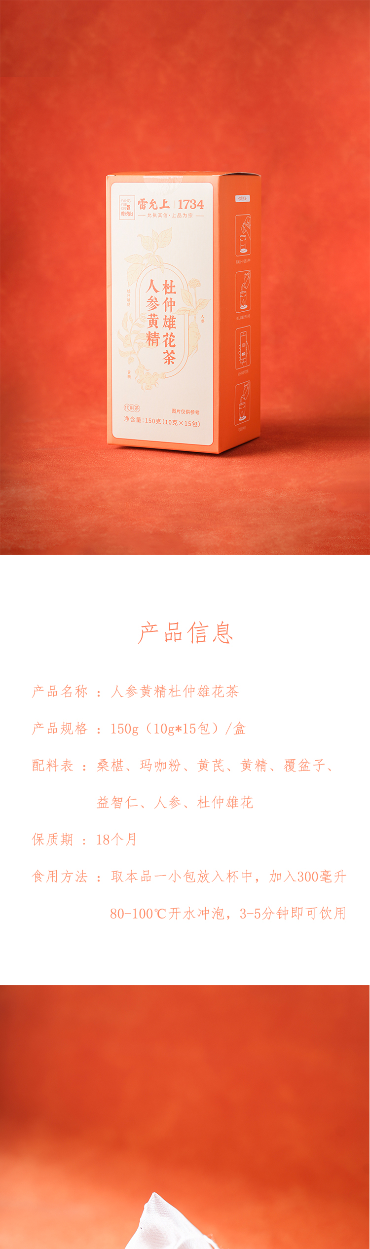 商品名称:雷允上人参黄精杜仲雄花茶10g*15/盒
