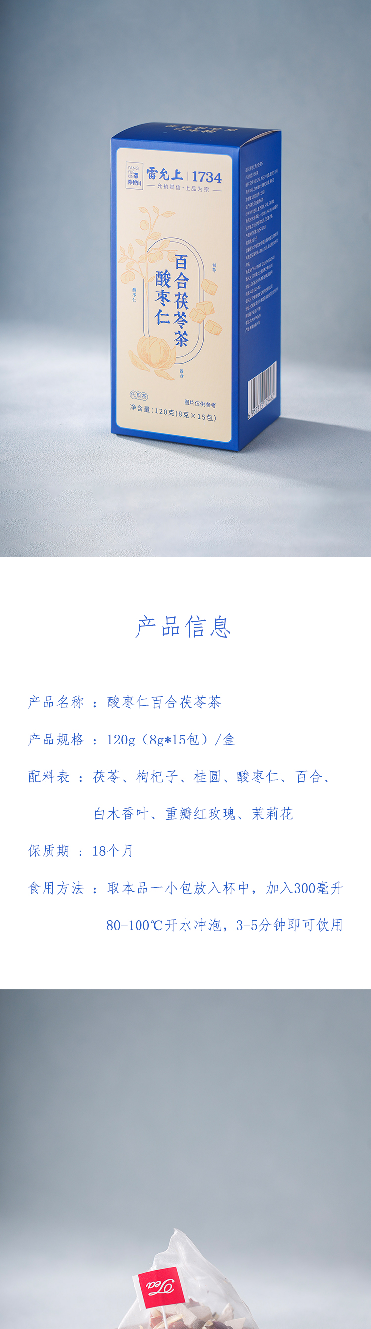商品名称:雷允上酸枣仁百合茯苓茶8g*15/盒