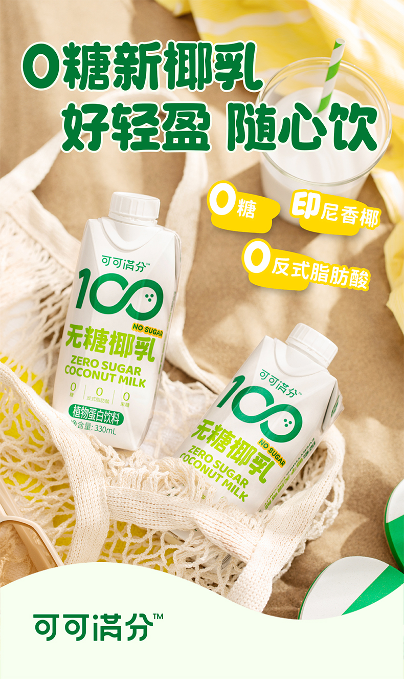 商品名称:可可满分无糖椰乳330ml*12瓶