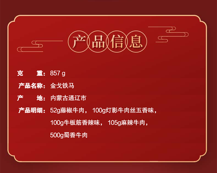 商品名称:科尔沁金戈铁马肉肉礼盒857g