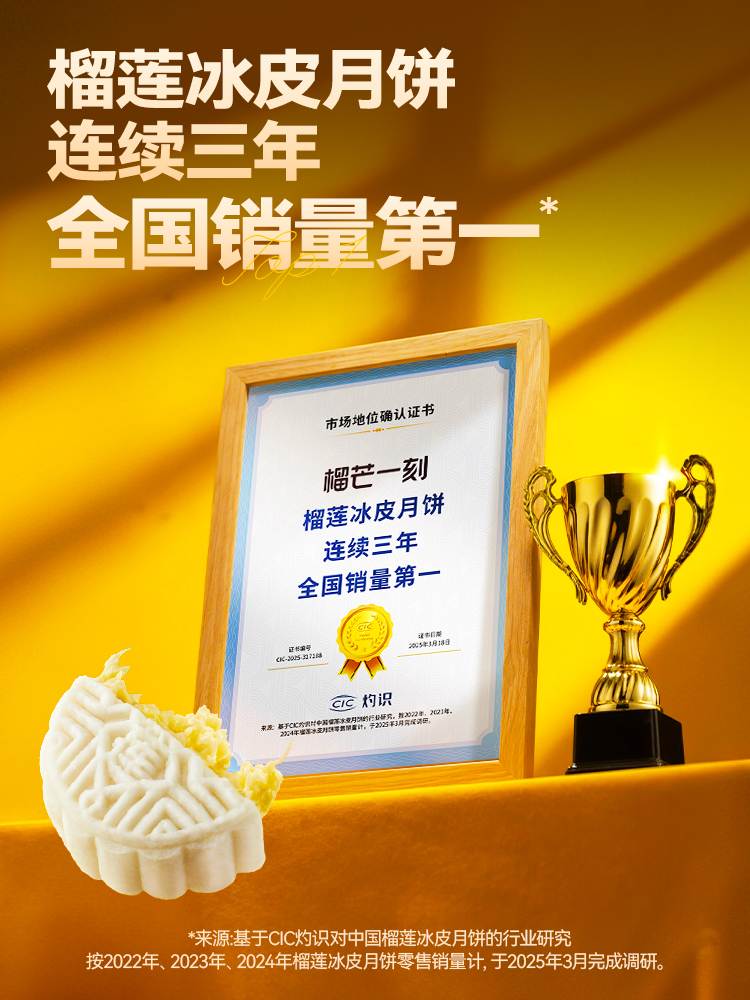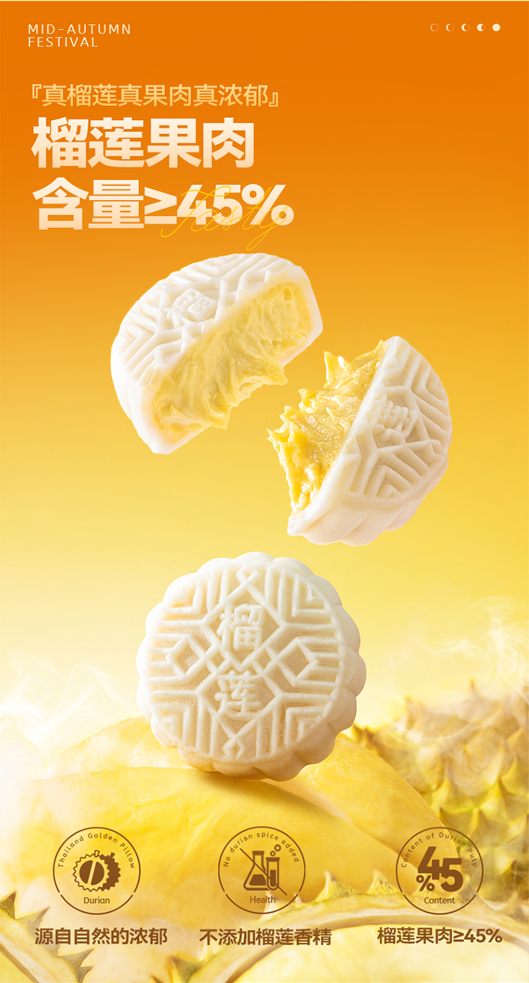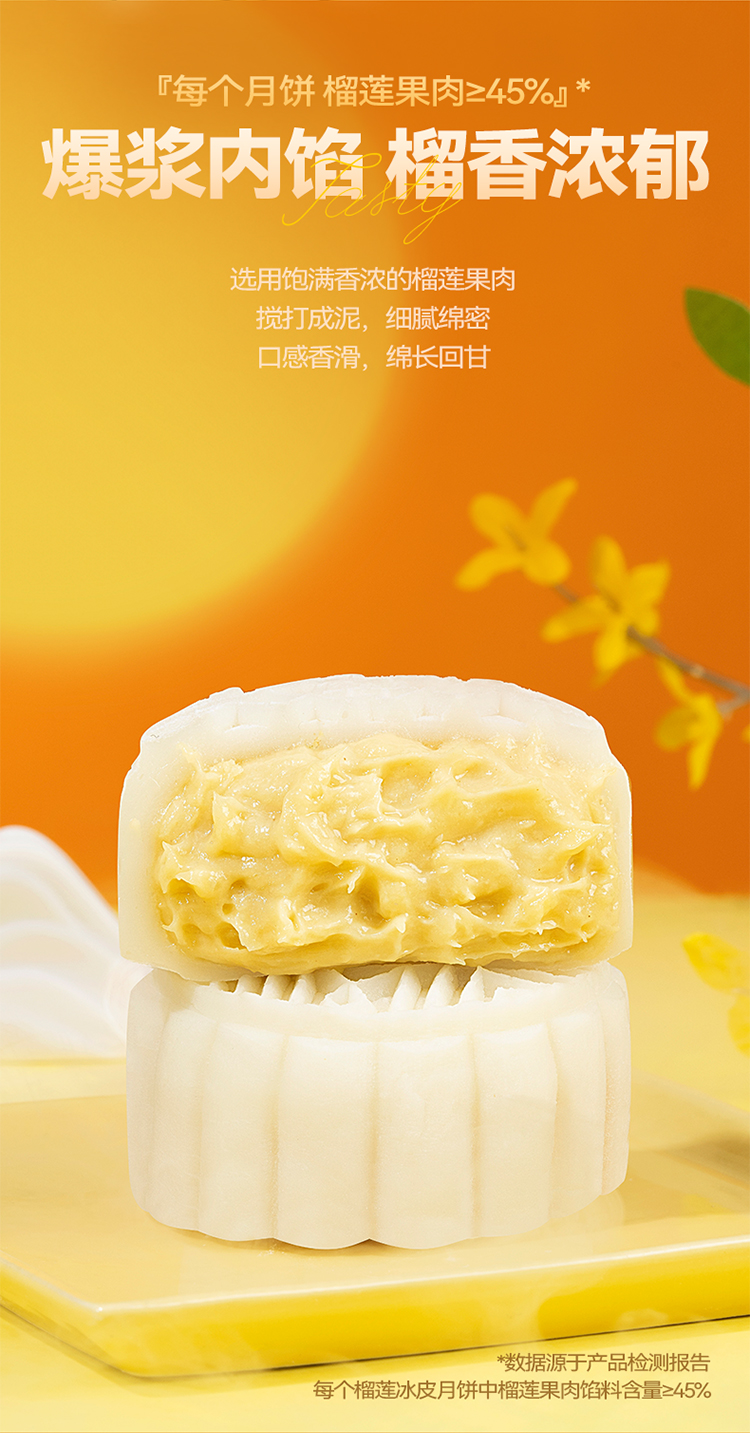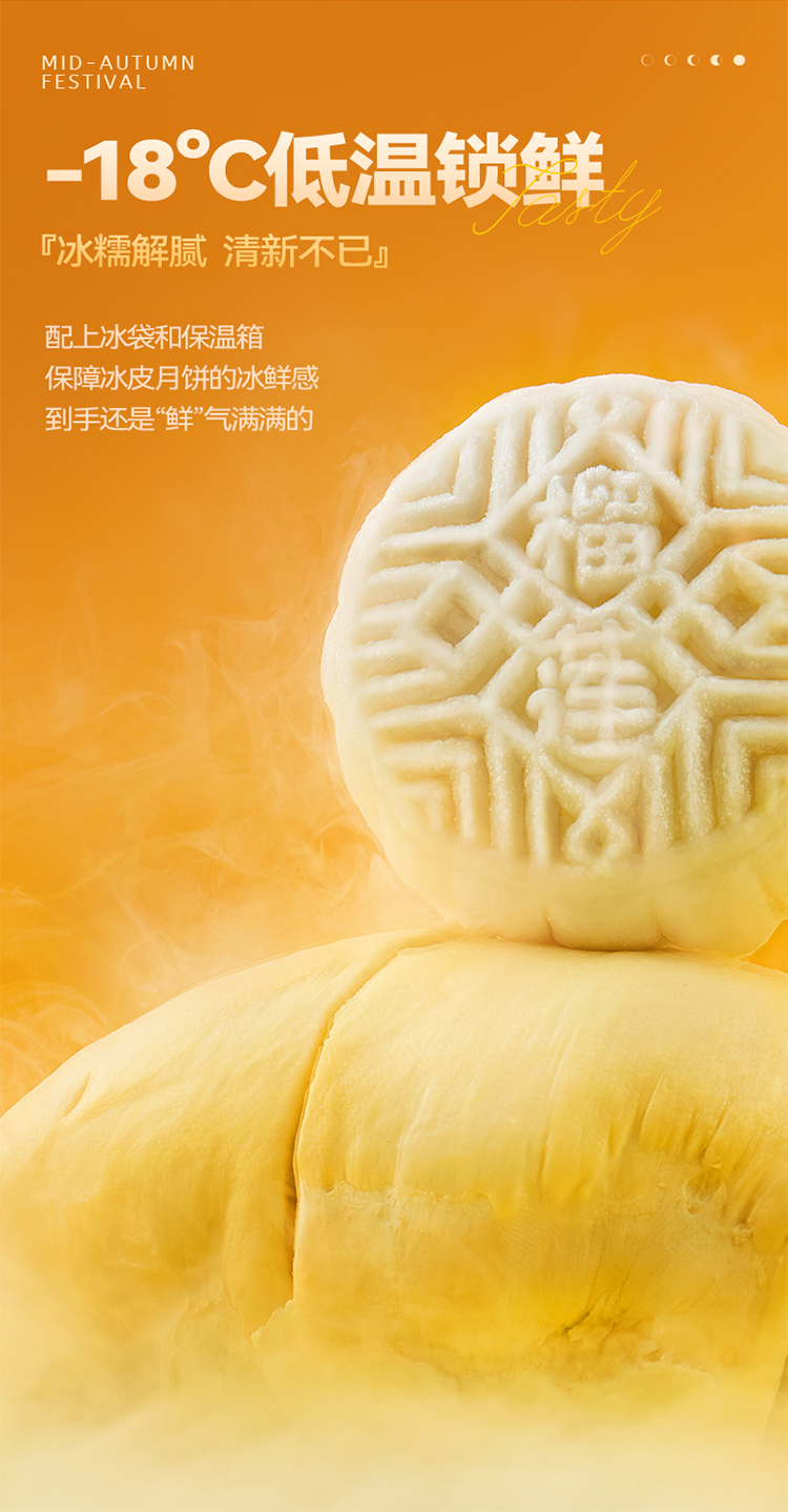 商品名称:榴芒一刻 金枕榴莲冰皮月饼80克*6枚/盒【含礼品袋】