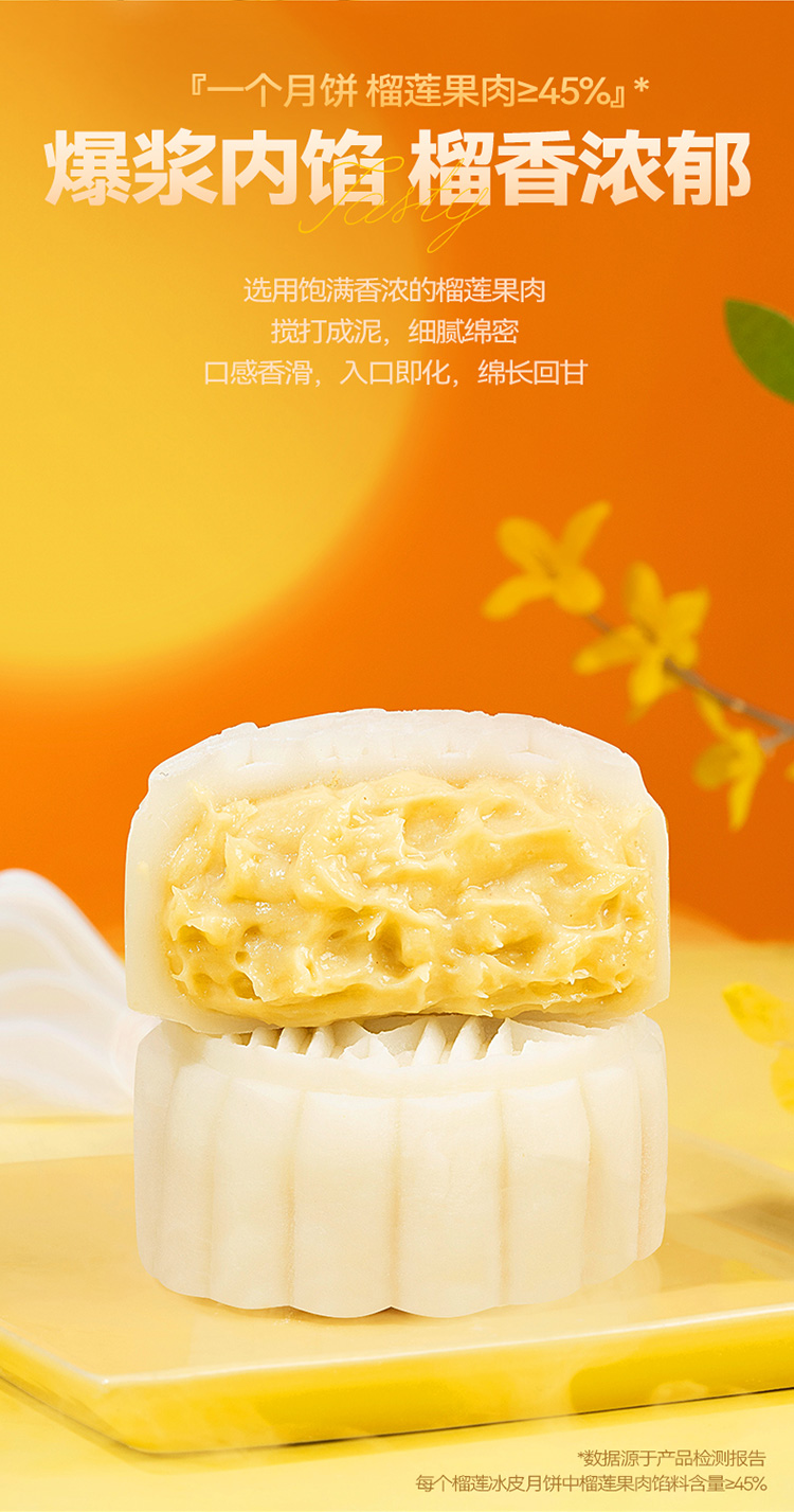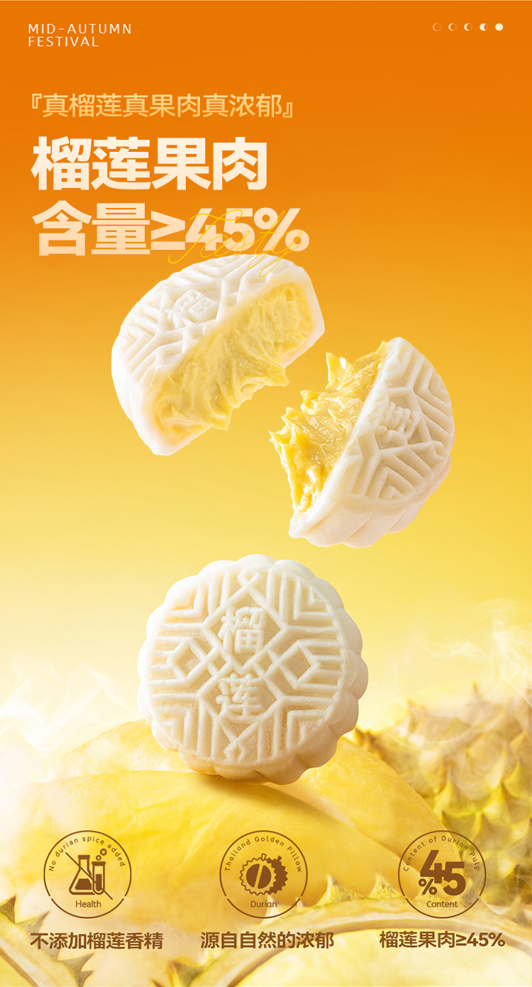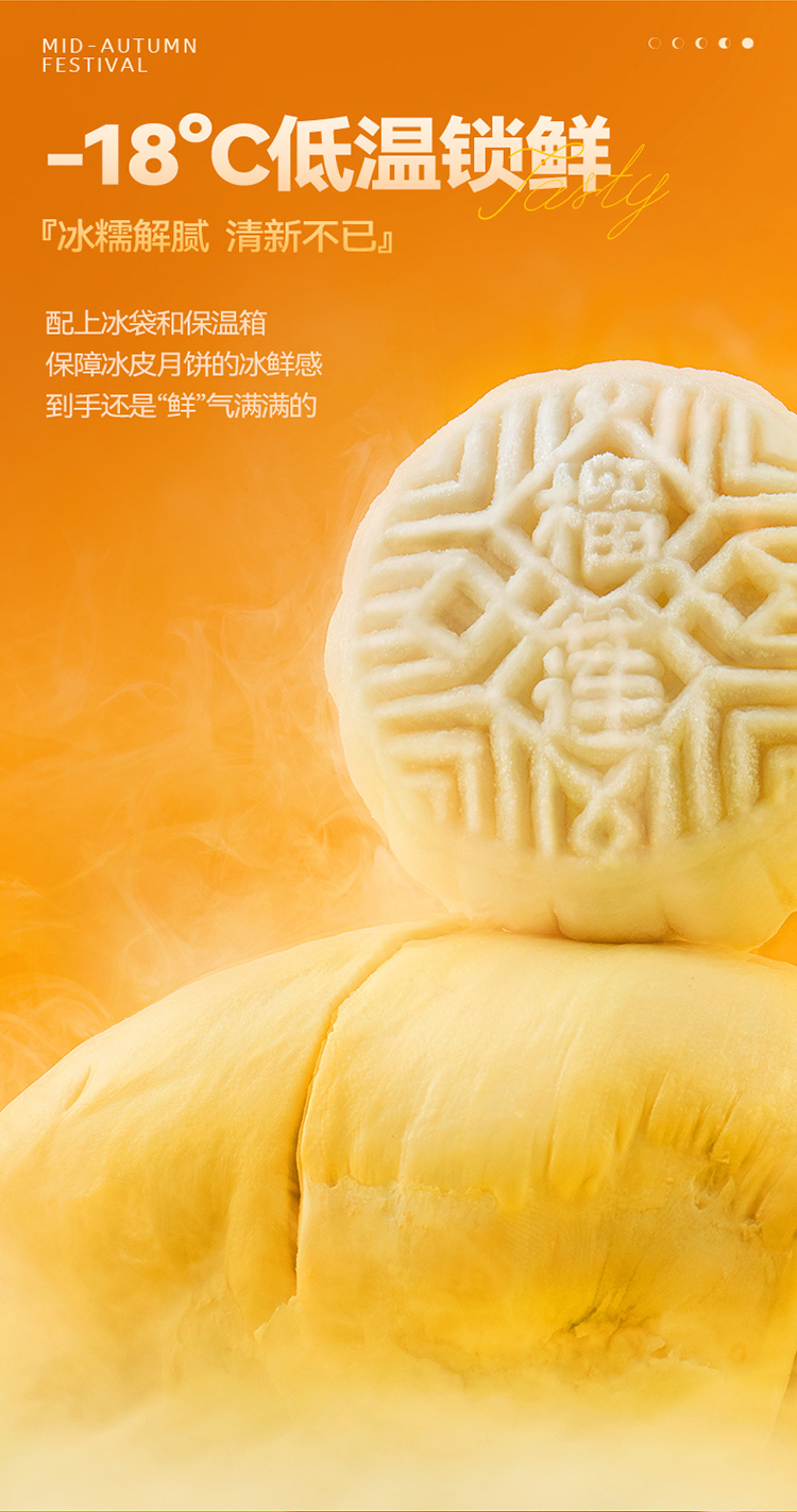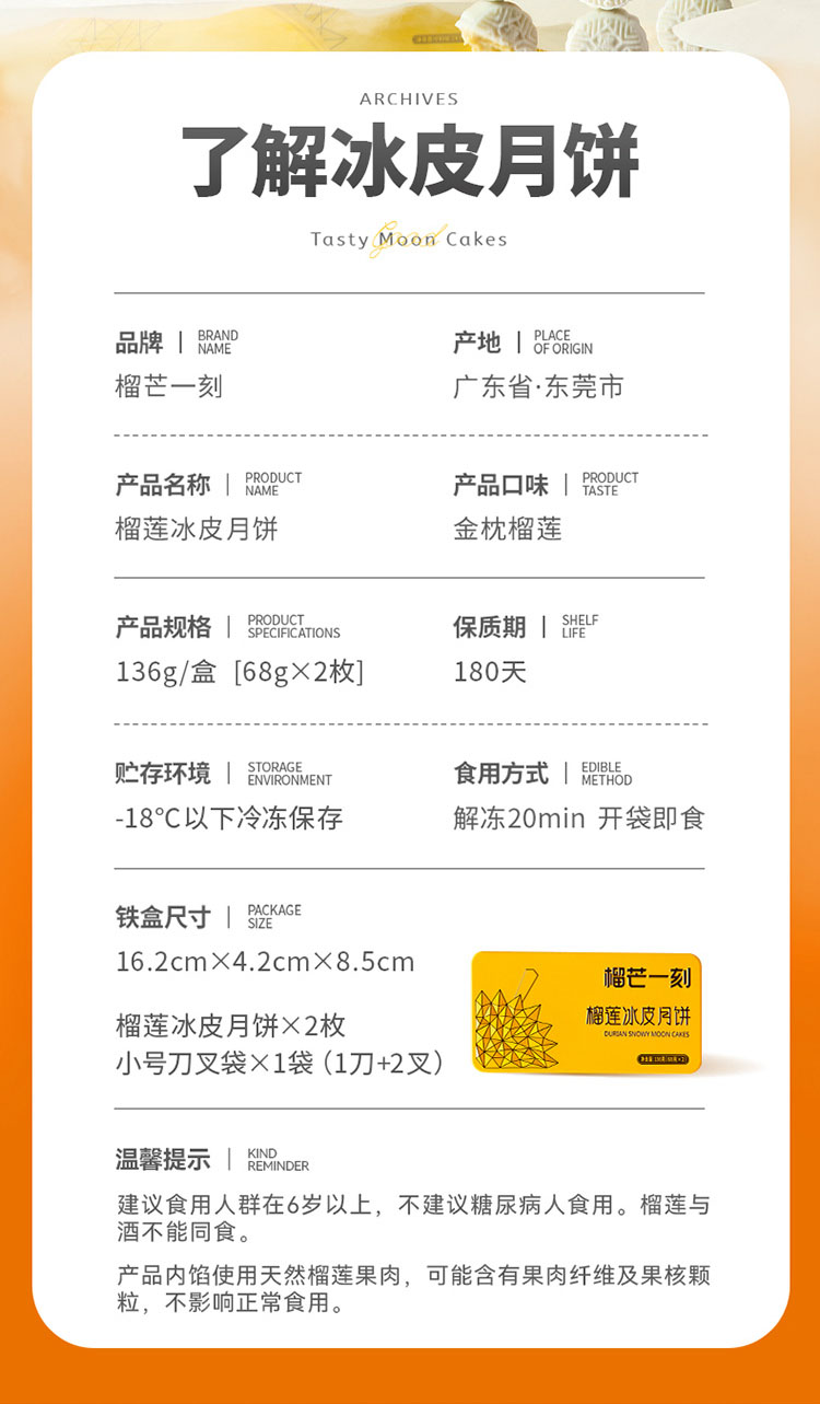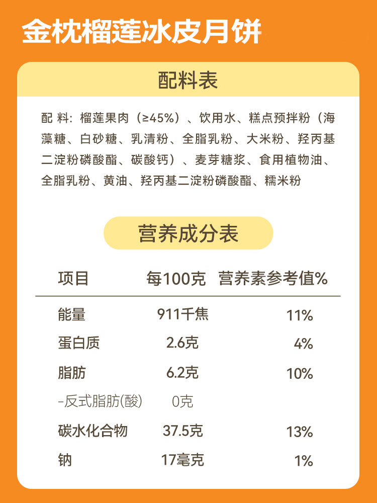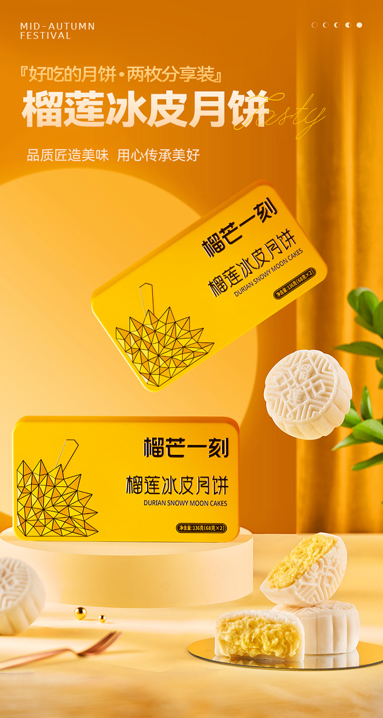 商品名称:榴芒一刻 金枕榴莲冰皮月饼68g*2枚装*2盒【无礼品袋】