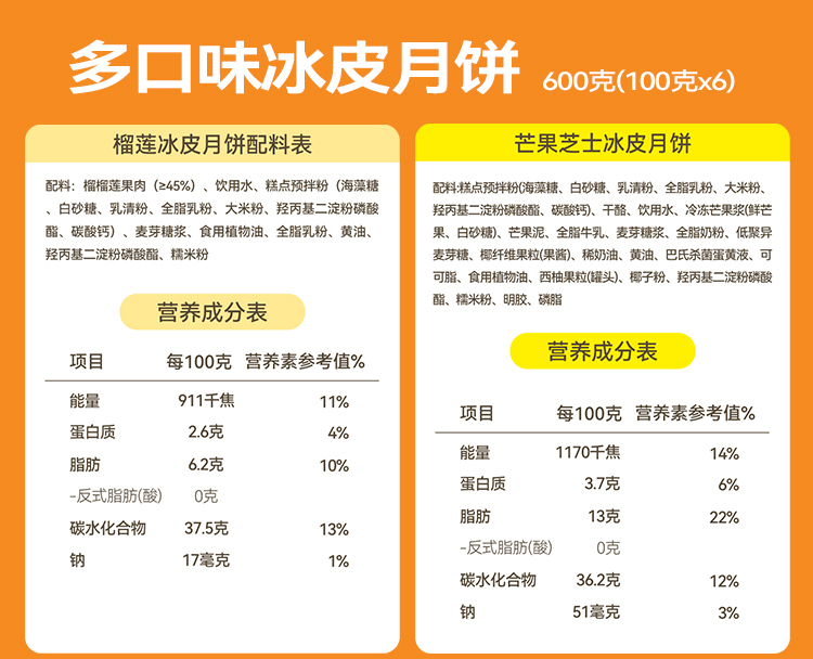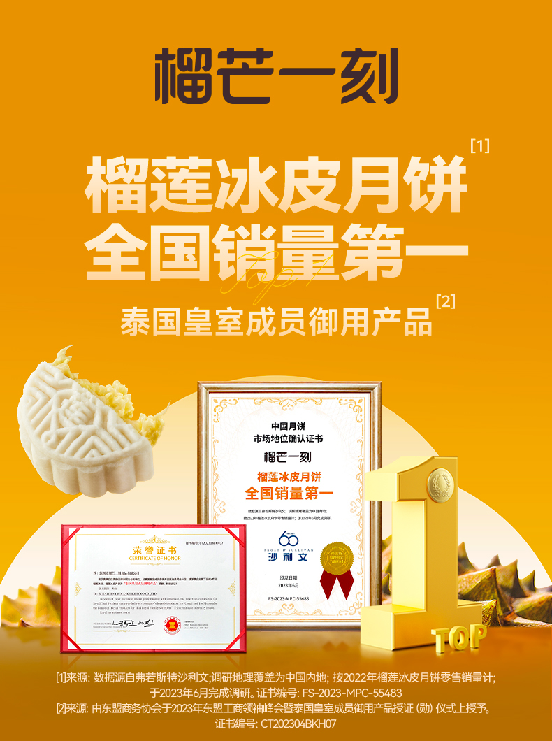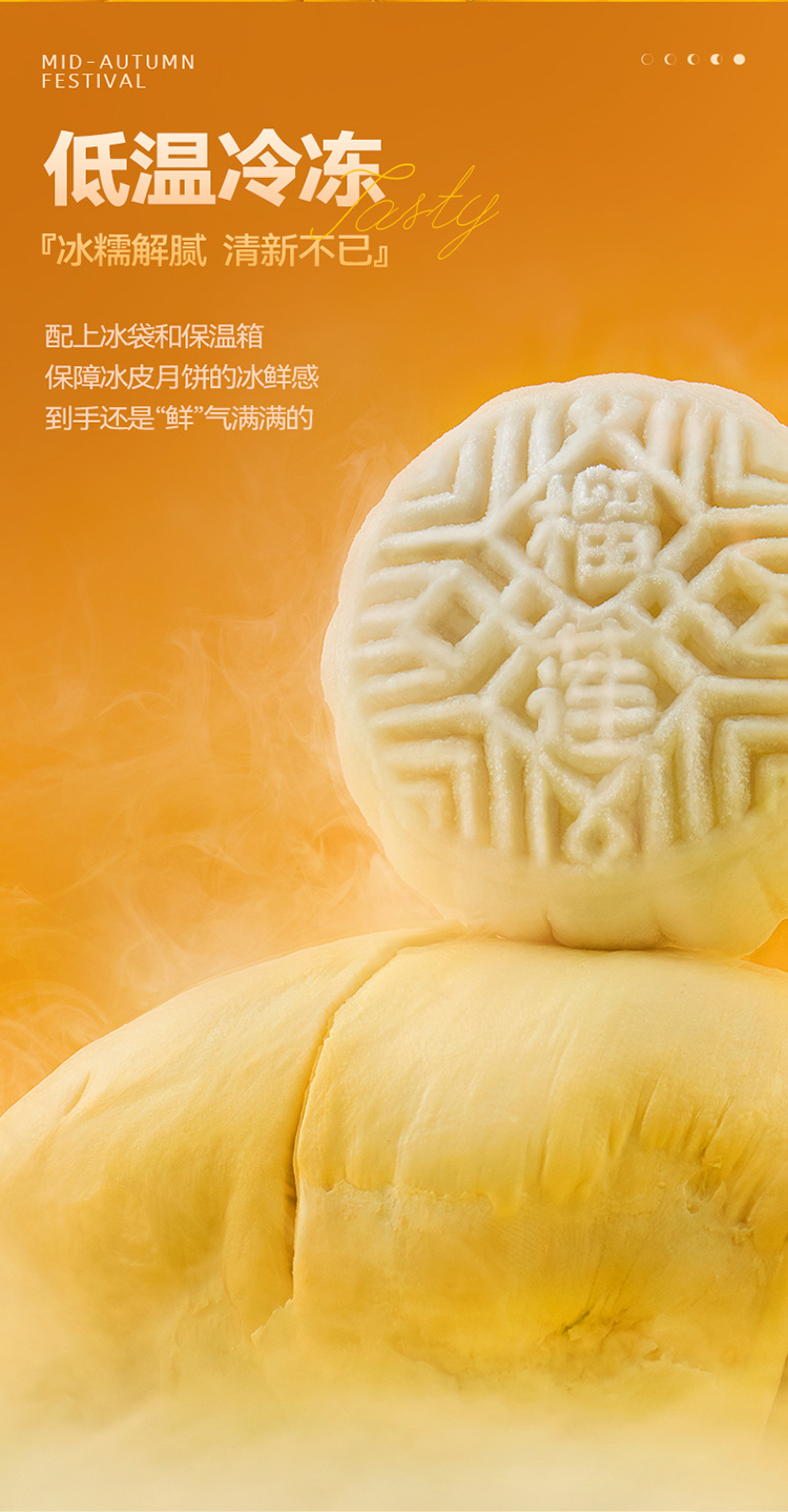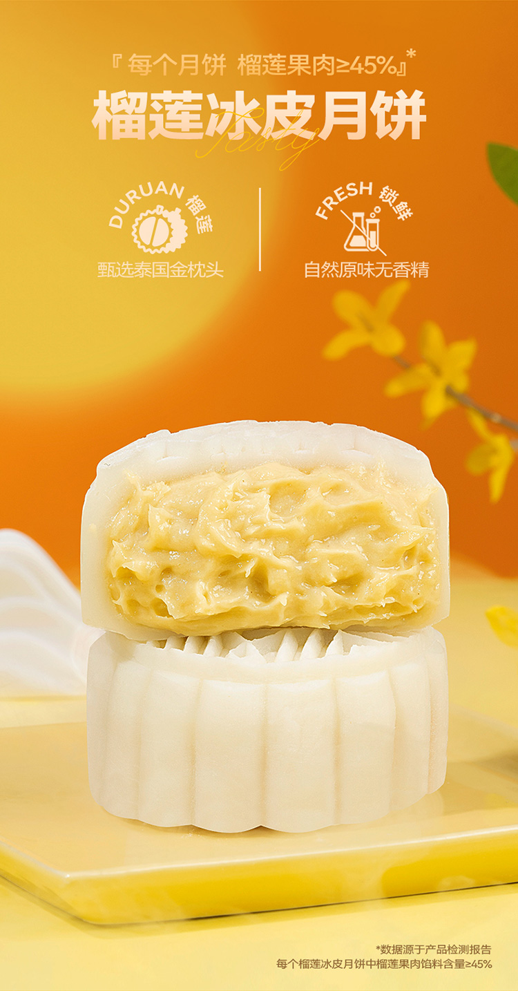 商品名称:榴芒一刻(金枕榴莲冰皮月饼+芒果芝士冰皮月饼68g*2枚)*2盒【无礼品袋】