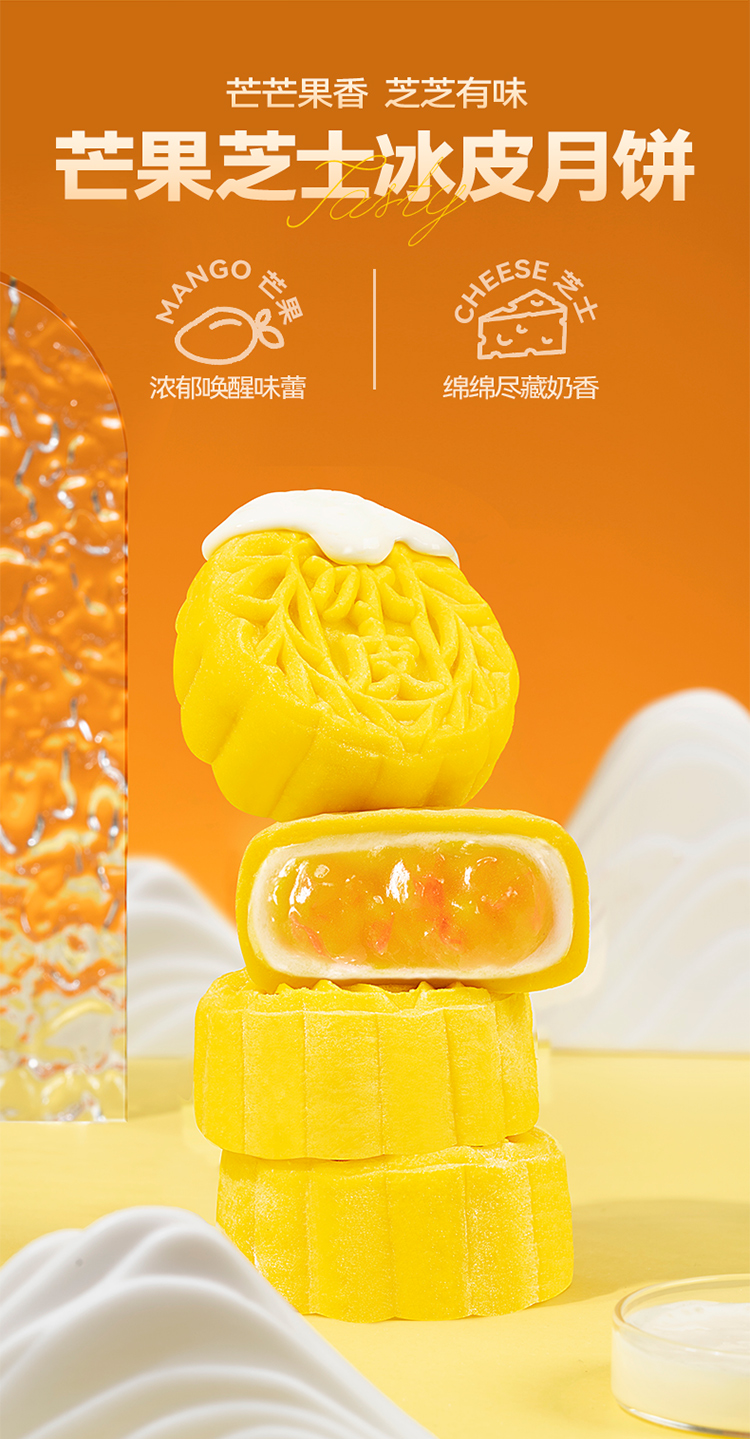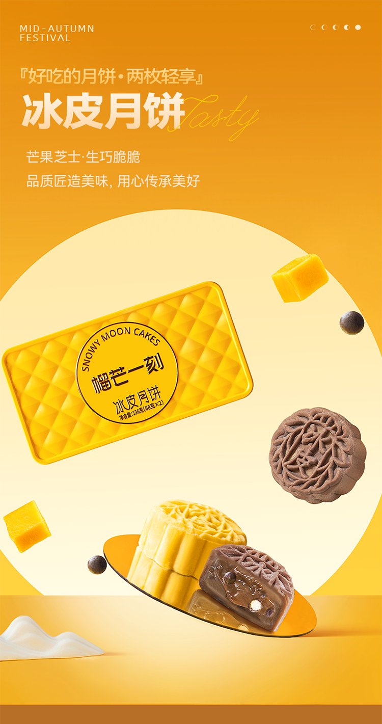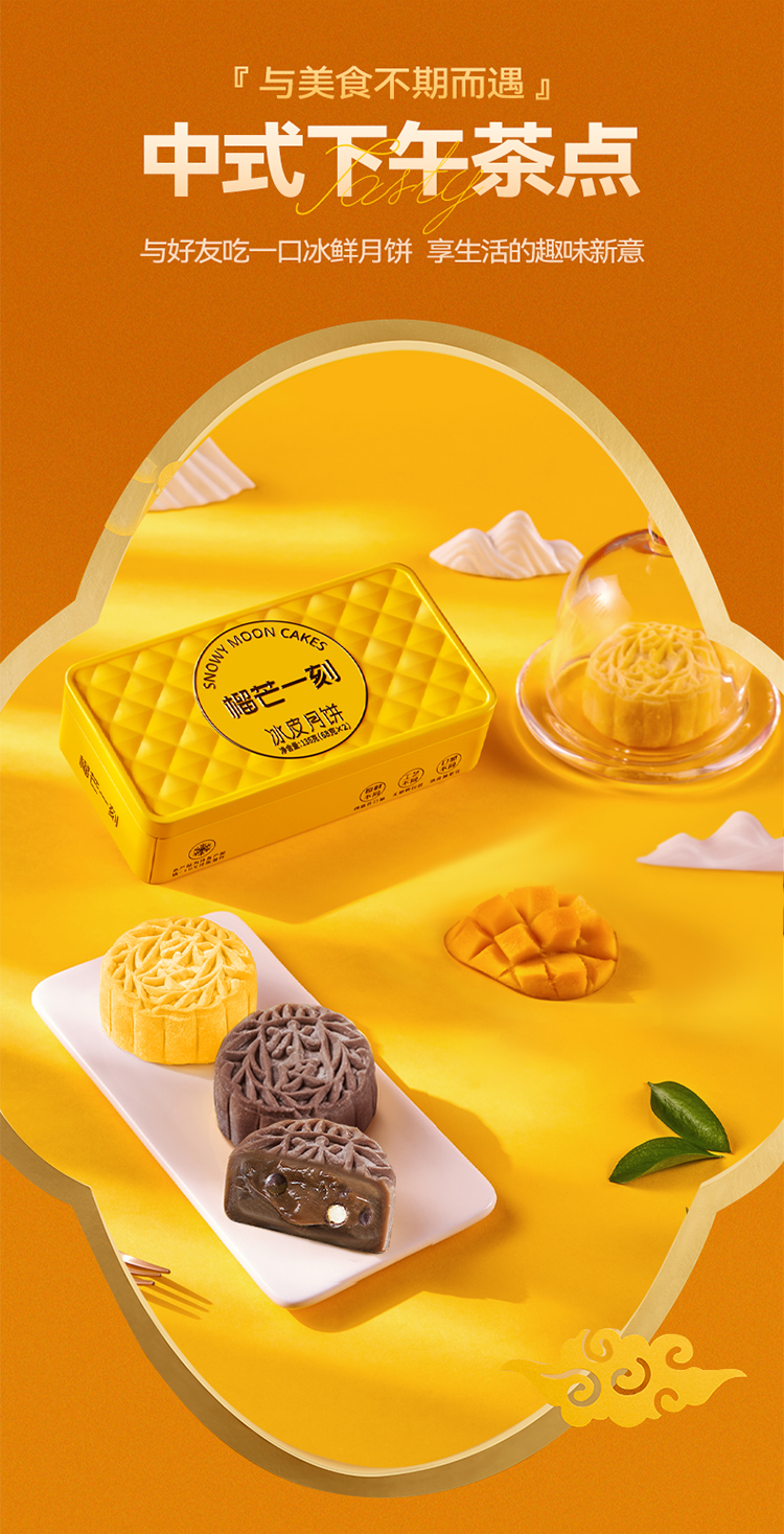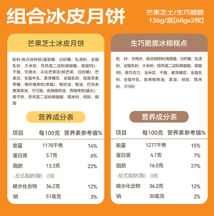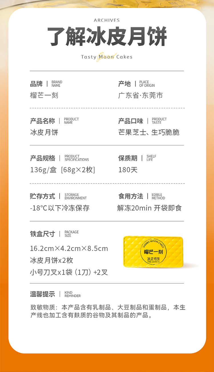 商品名称:榴芒一刻(芒果芝士冰皮月饼+生巧脆脆冰皮月饼68g*2枚)*2盒【无礼品袋】