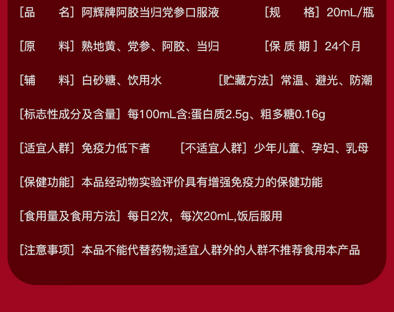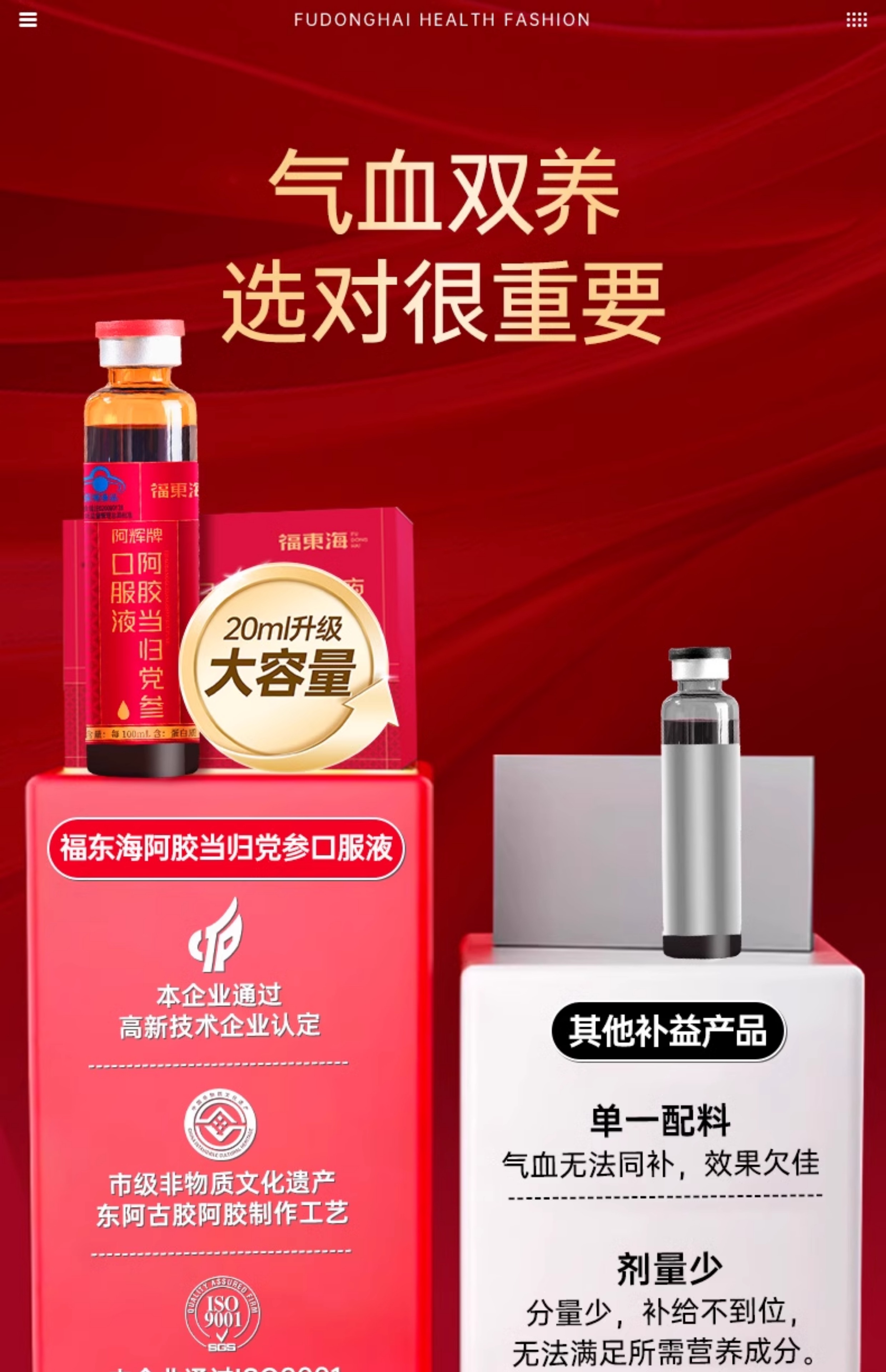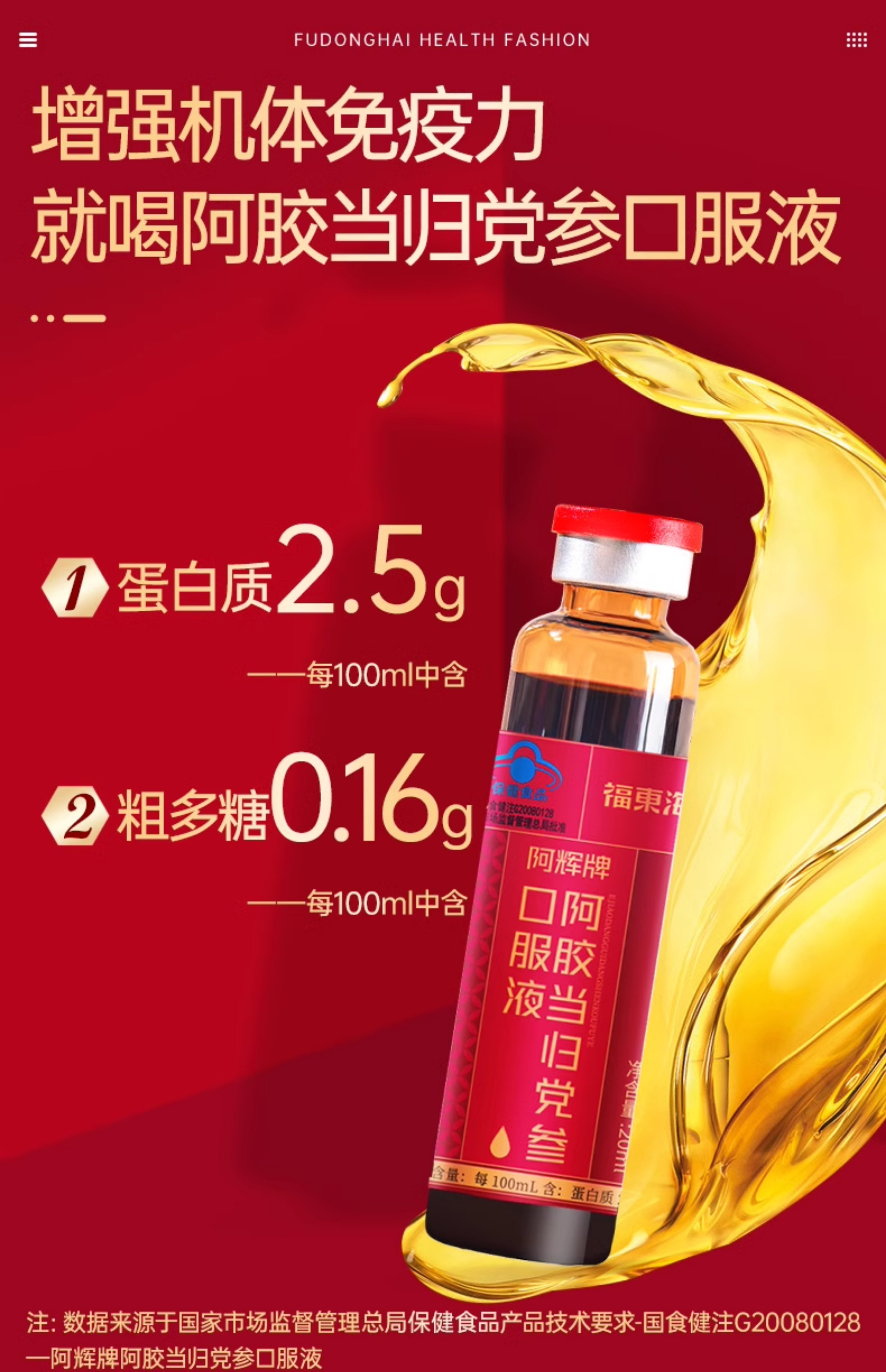 商品名称:【福东海】阿胶当归党参口服液120ml