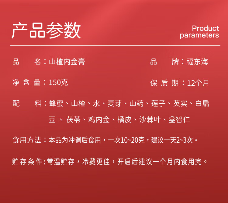 商品名称:【福东海】 山楂内金膏150克*2瓶