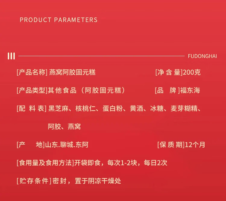 商品名称:【福东海】 燕窝阿胶固元糕200克*2盒