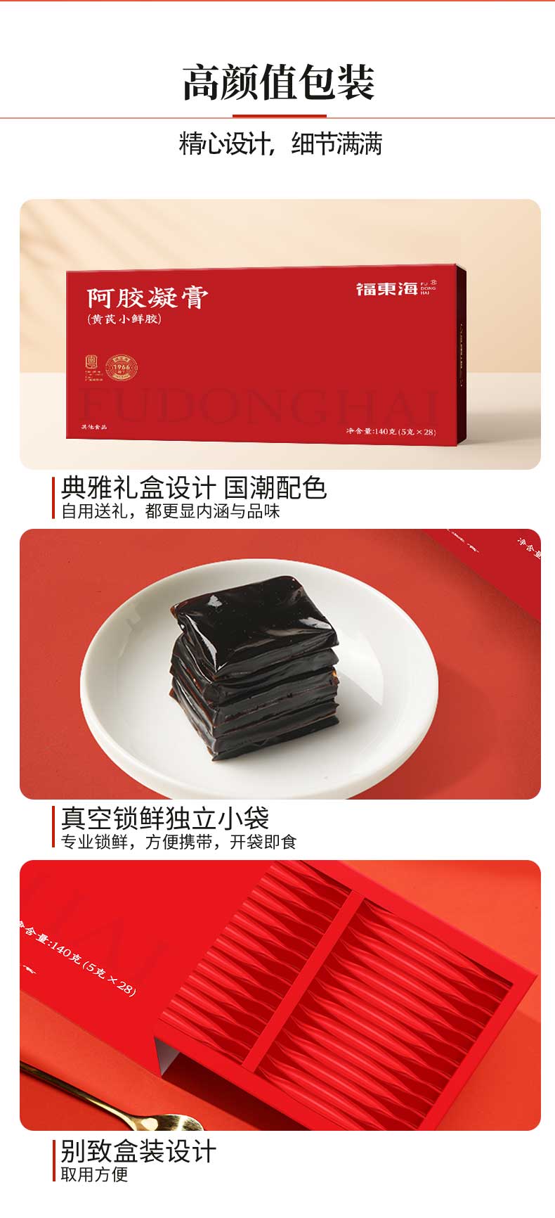 商品名称:【福东海】 阿胶凝膏(黄芪小鲜胶)140克*2盒