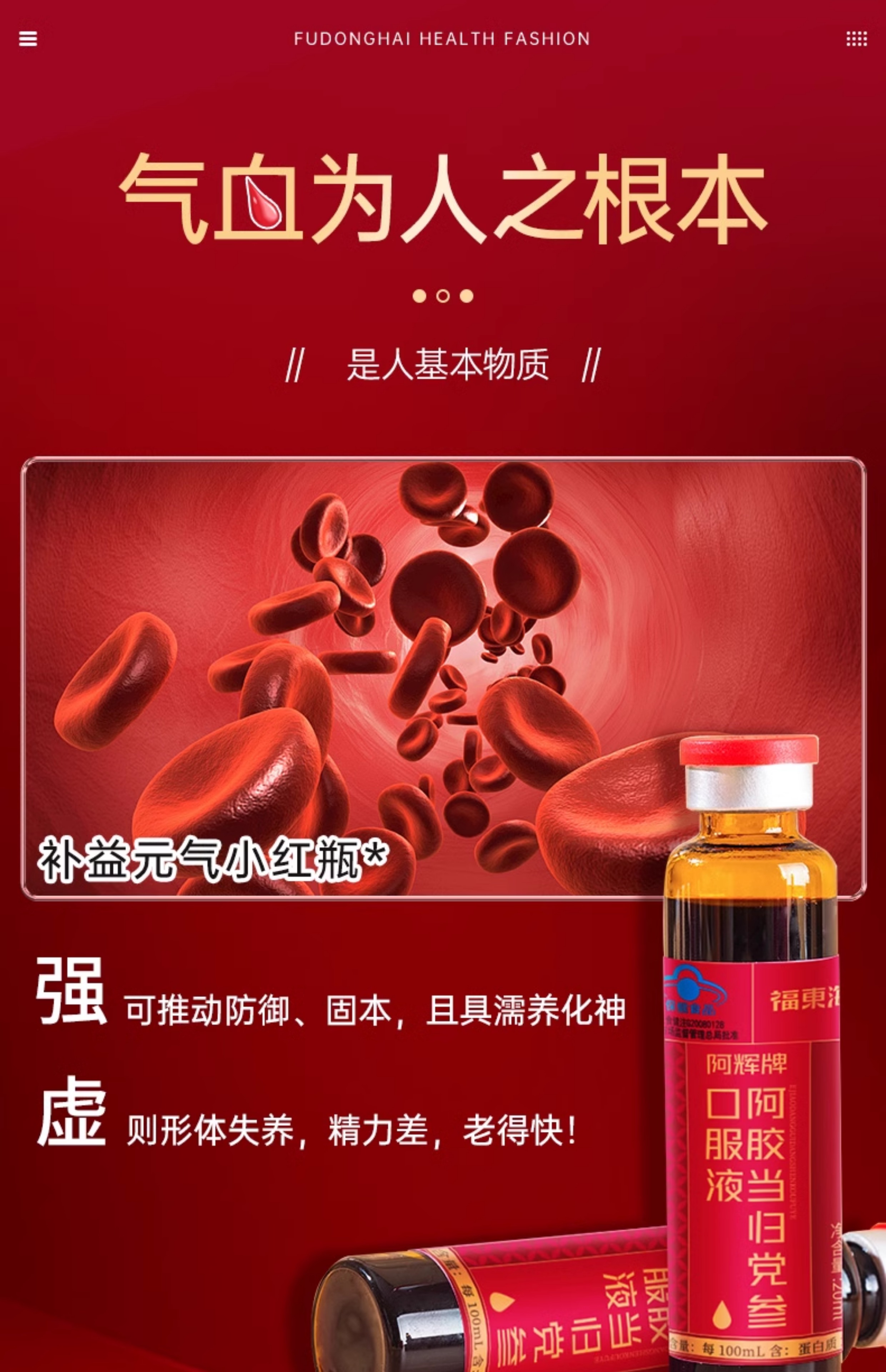 商品名称:【福东海】 阿胶当归党参口服液120ml*2盒