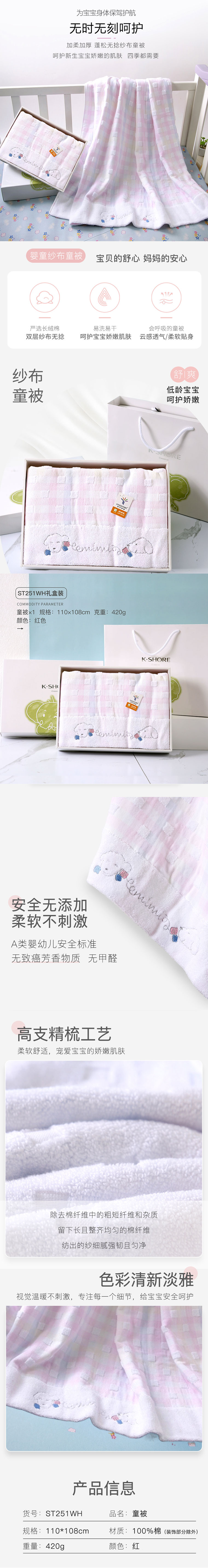 商品名称:金号 ST251WH 纯棉毛巾毯无捻卡通绣花柔软舒适洗浴 110*108cm(单位:条)