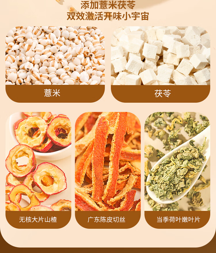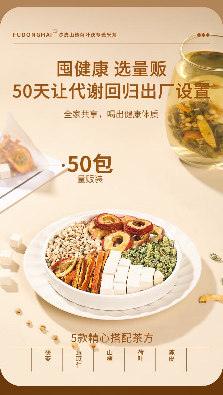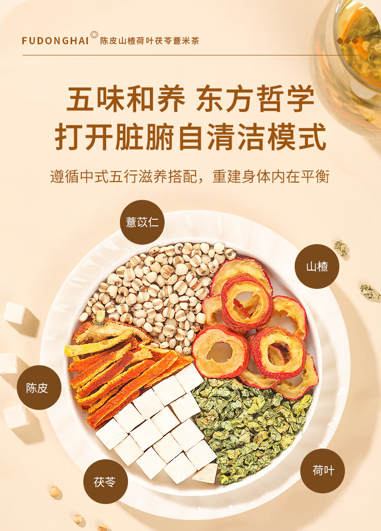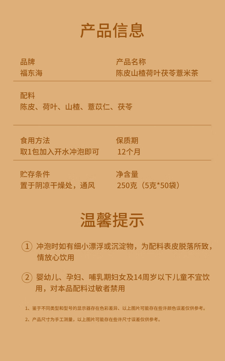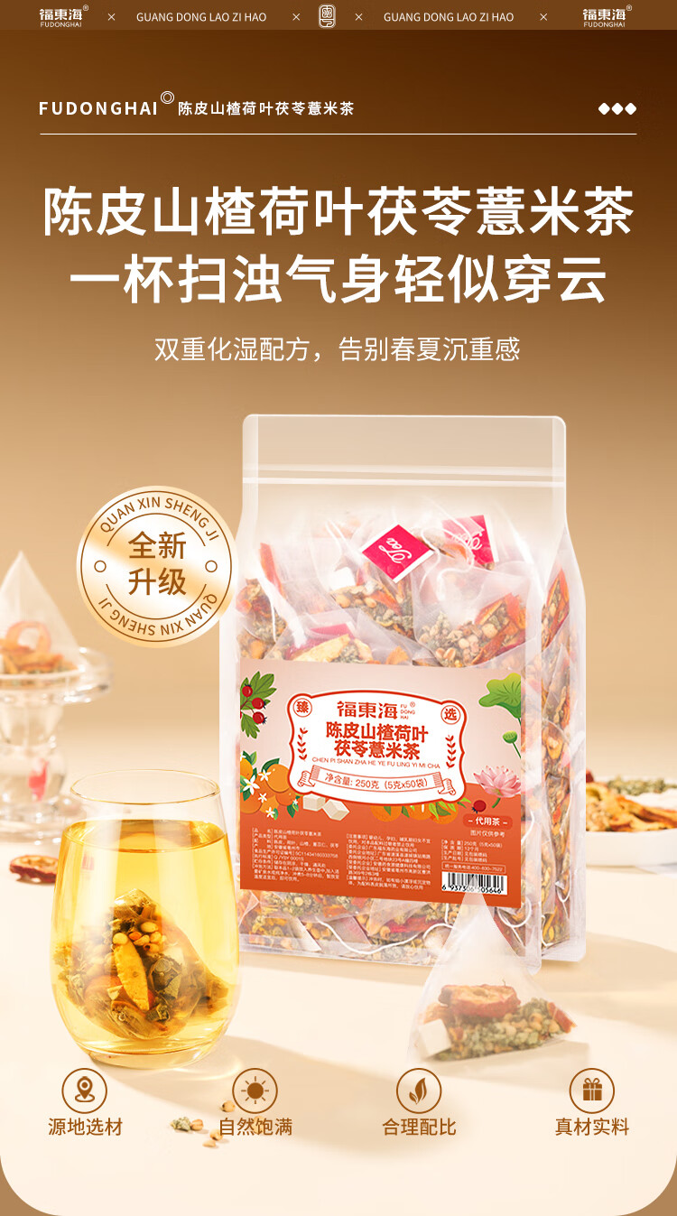 商品名称:【福东海】 陈皮山楂荷叶茯苓薏米茶250克*2盒