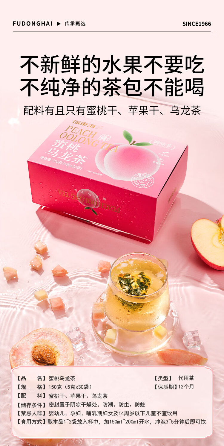 商品名称:【福东海】蜜桃乌龙茶150克(5克x30)*2盒