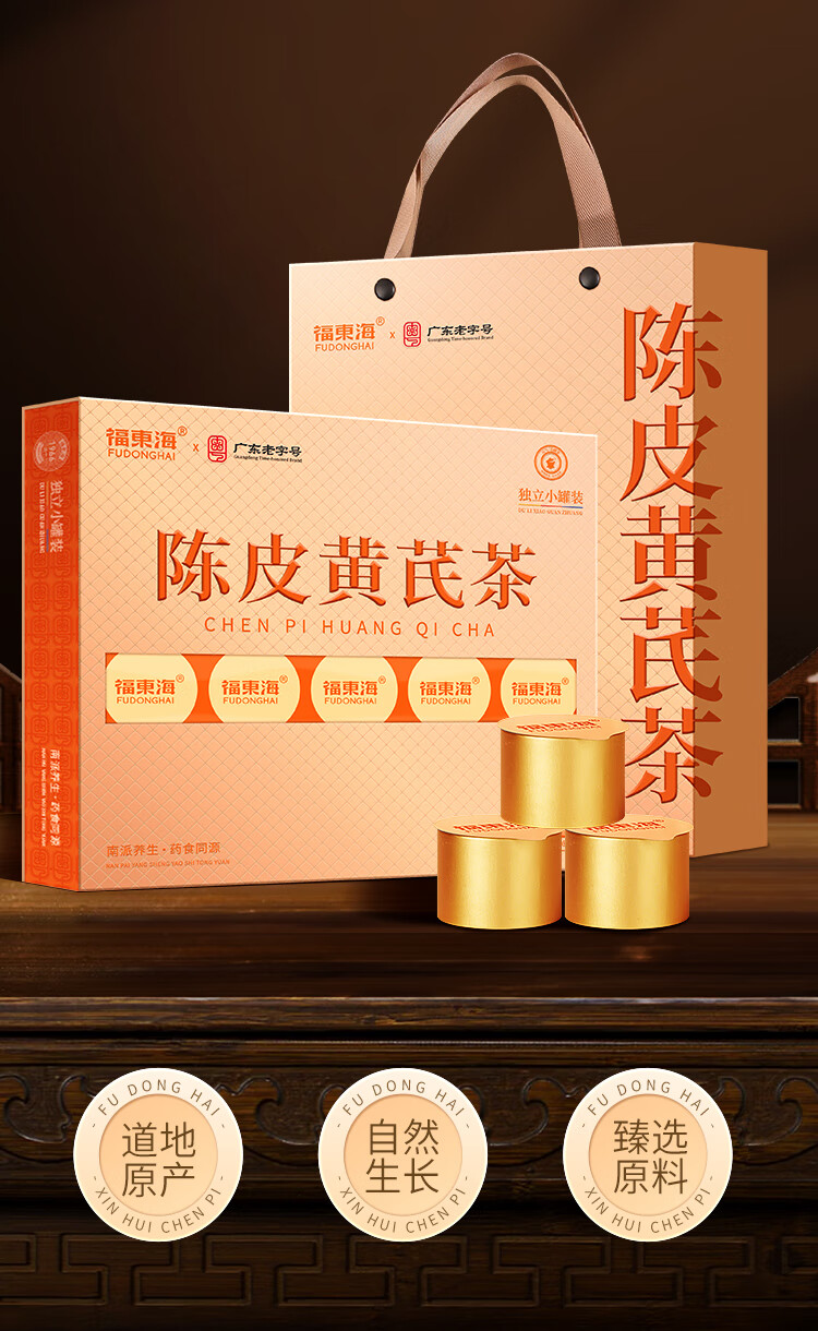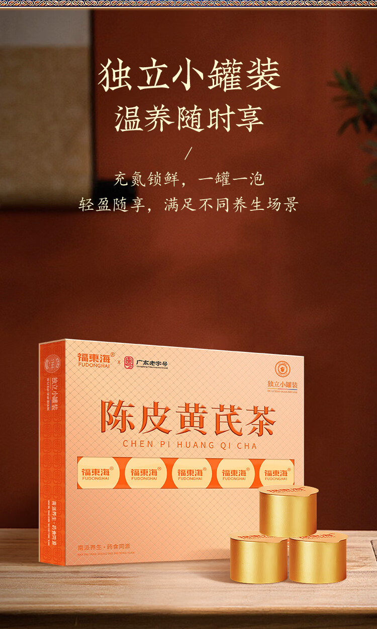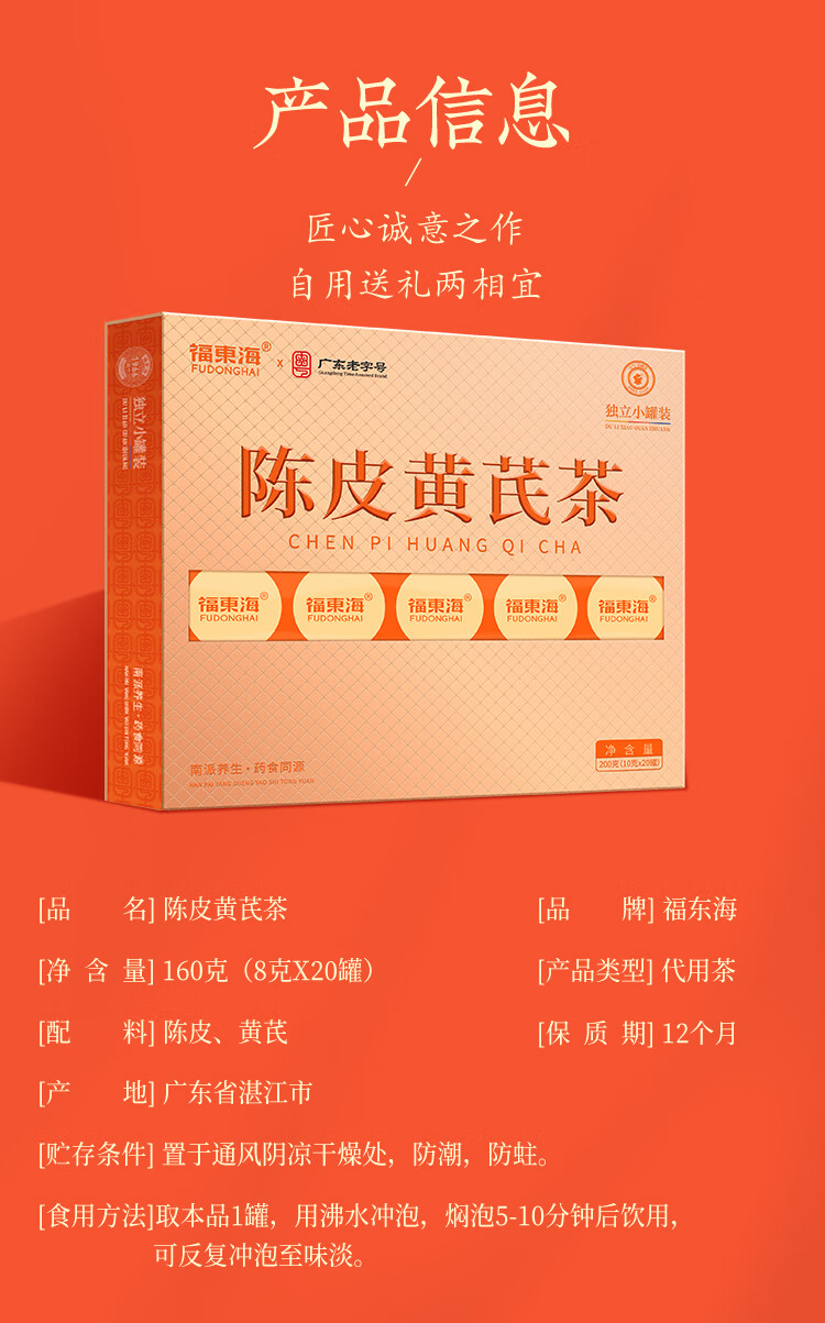 商品名称:【福东海-特渠】陈皮黄芪茶(金装小罐版)160克(8克X20罐)
