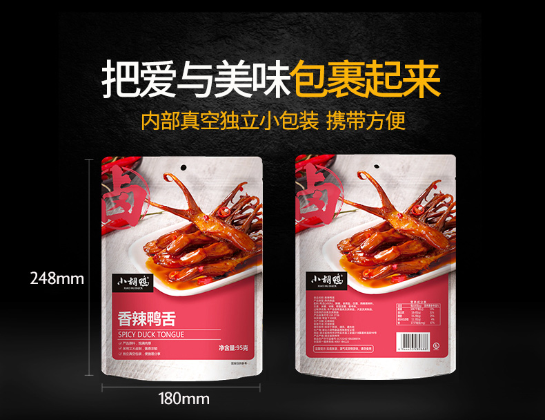 商品名称:小胡鸭香辣鸭舌95g/袋