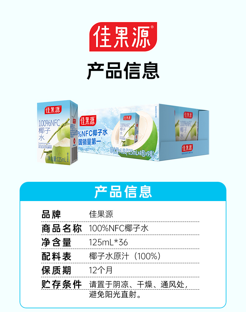 商品名称:佳果源椰子水礼盒装125ml*36/箱