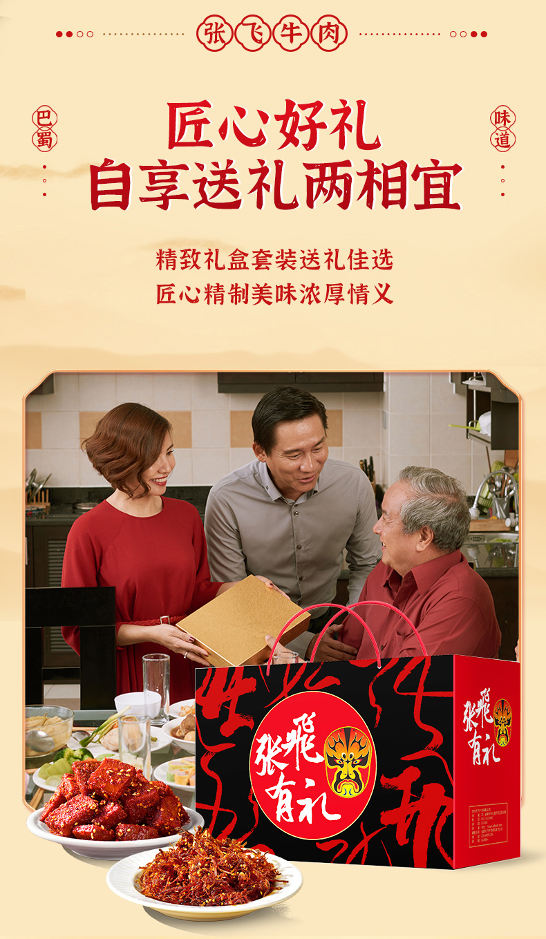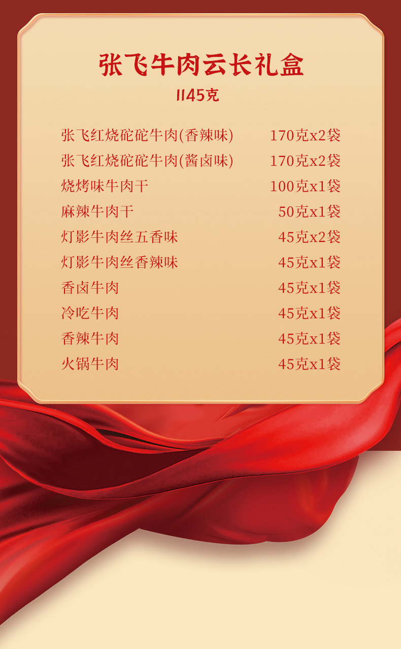 商品名称:张飞牛肉云长礼盒1145g/盒