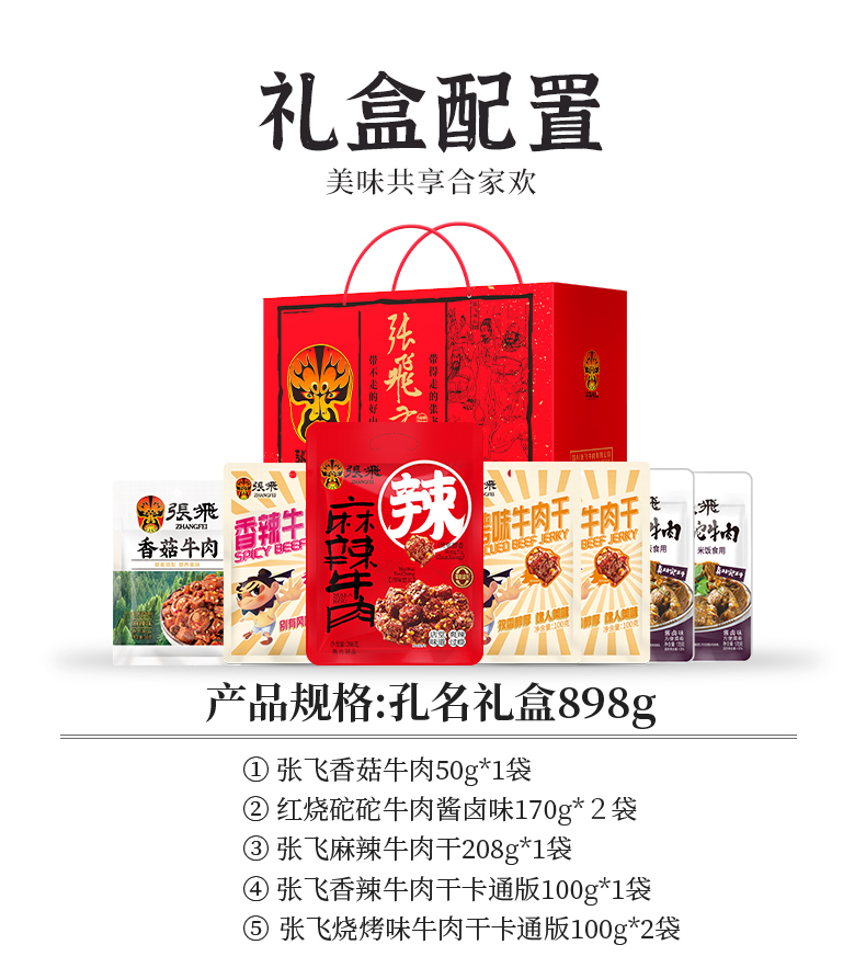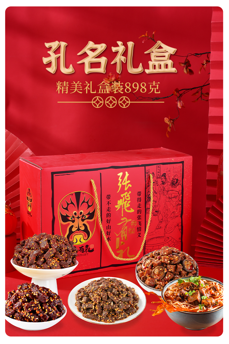 商品名称:张飞牛肉孔名礼盒898g/盒