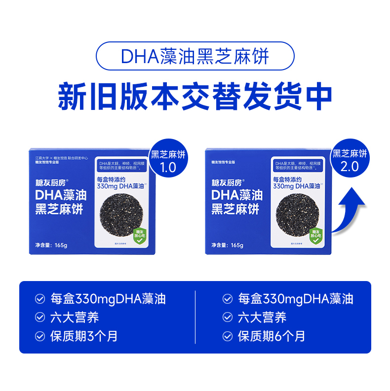 商品名称:糖友厨房DHA藻油黑芝麻饼165g*1/盒