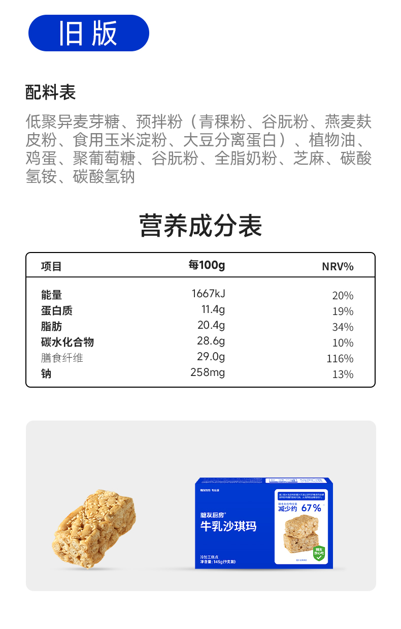 商品名称:糖友厨房牛乳沙琪玛145g*1/盒