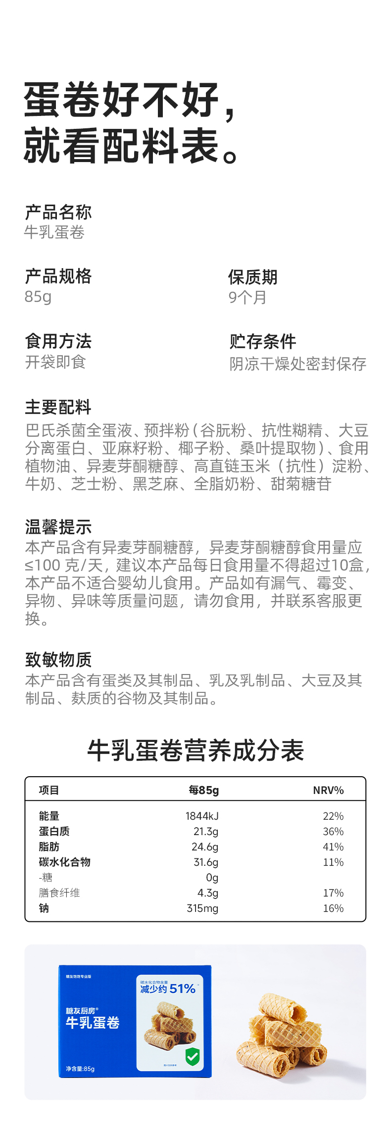 商品名称:糖友厨房牛乳蛋卷85g*1/盒