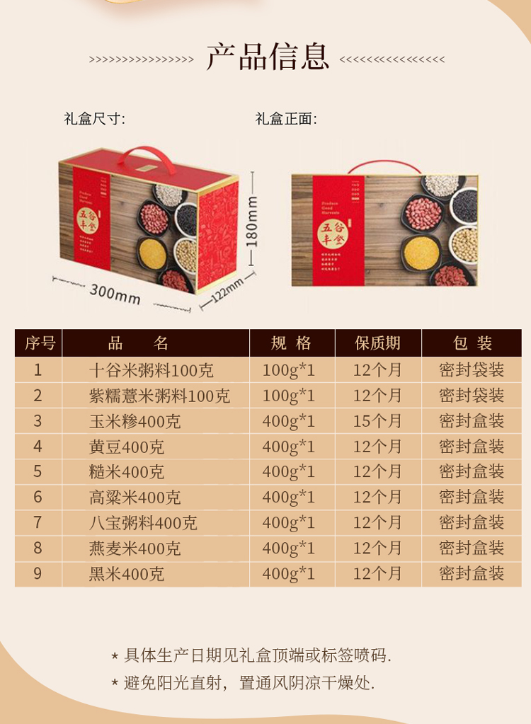 商品名称:姚朵朵五谷丰登礼盒3000克/盒