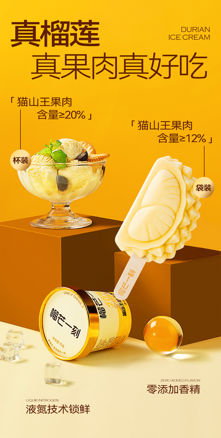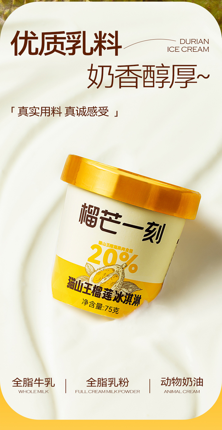 商品名称:榴芒一刻|猫山王冰淇淋3杯+8支(组合装)