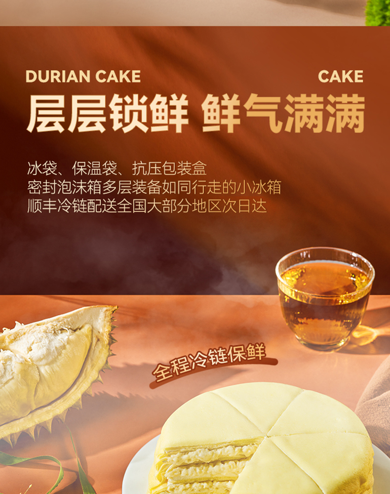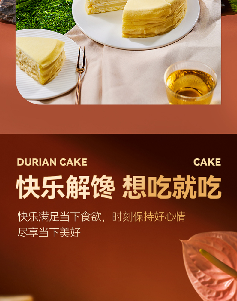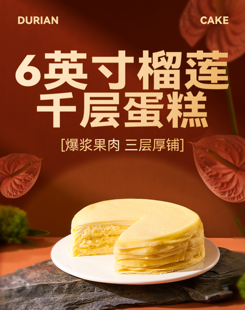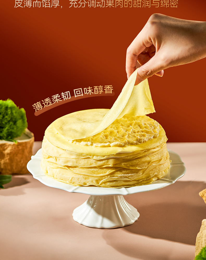 商品名称:榴芒一刻|6英寸榴莲千层蛋糕榴莲味500g/份