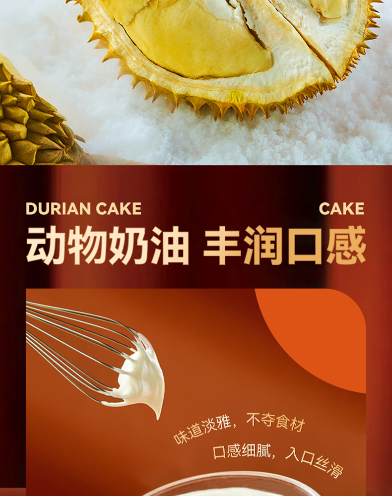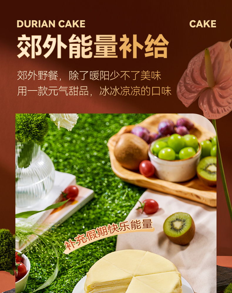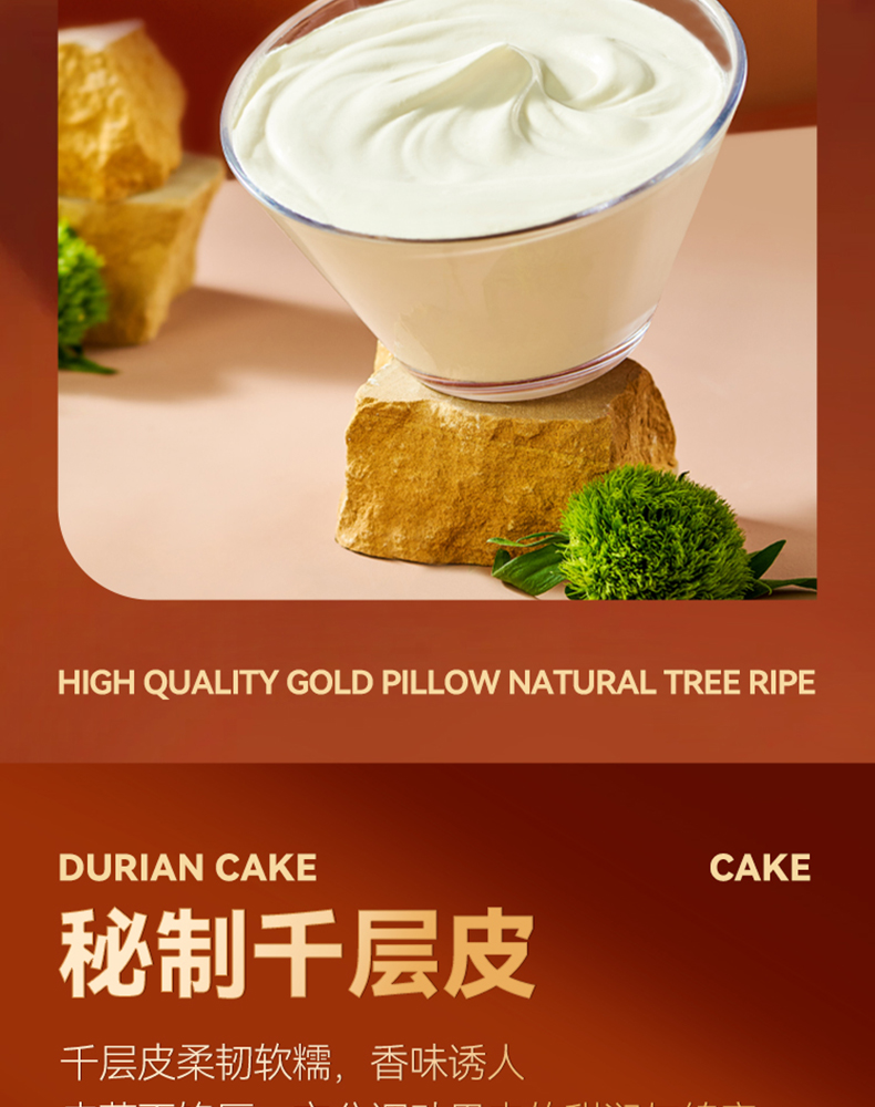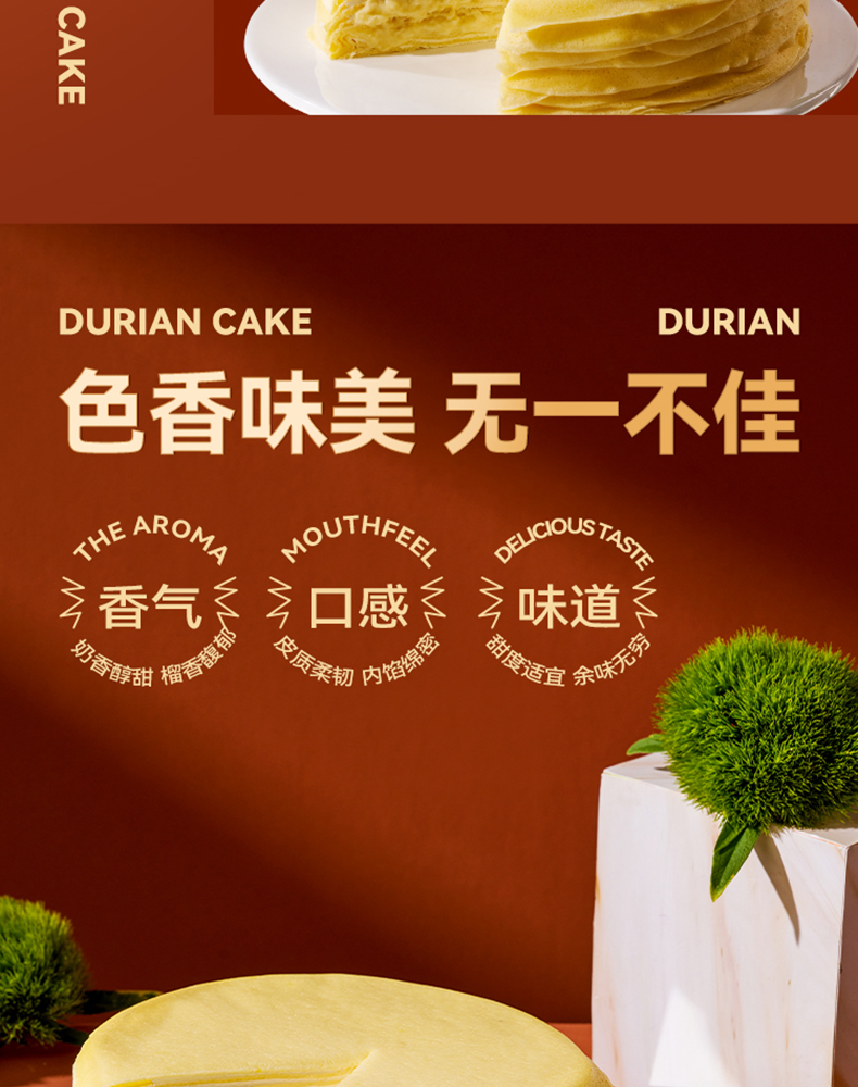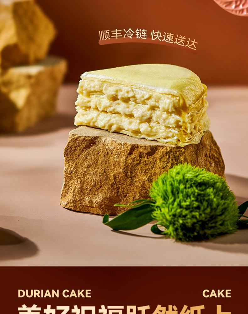 商品名称:榴芒一刻|6英寸榴莲千层蛋糕榴莲味500g/份