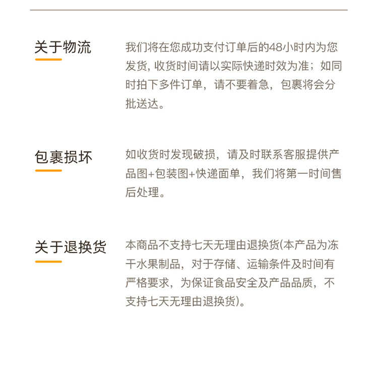 5.若退回商品有缺件、影响二次销售状况时,退款作业将暂时停止,留芳商城会依商品状况报价,后由客服人员与您联系说明并于订单内扣除费用后退回剩余款项, 或您可以取消退货申请;若符合退货条件者将于商品取回后约1-2个工作日内完成退款