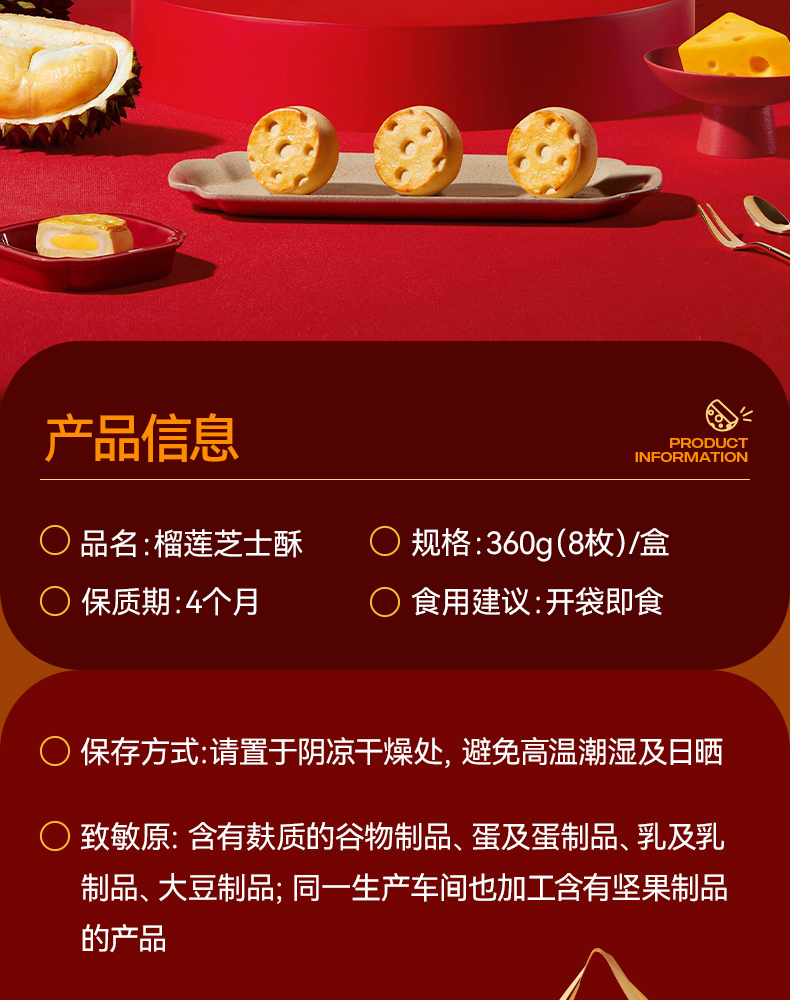 商品名称:榴芒一刻|榴莲芝士酥45g*8(含礼袋)