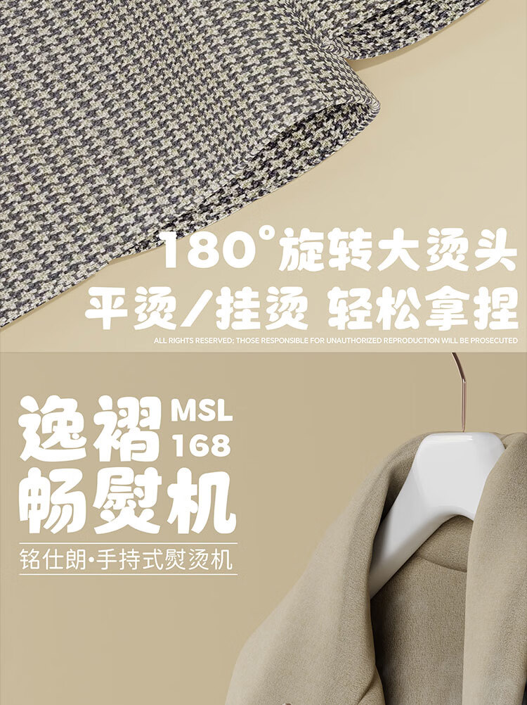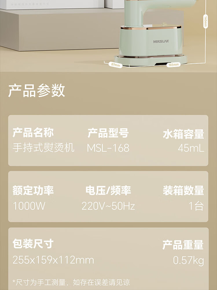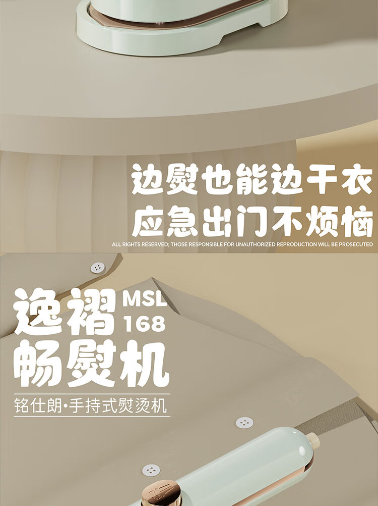 商品名称:铭仕朗(MINSLAN)逸褶畅熨机手持挂烫机家用便携式神器 晴山蓝 MSL-168(单位:台)