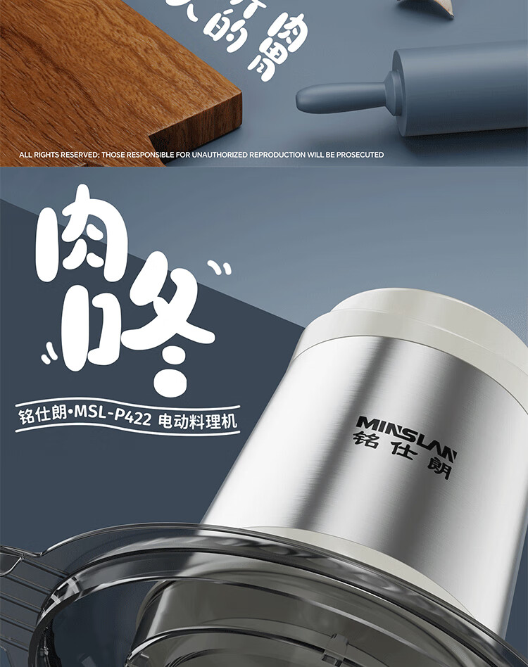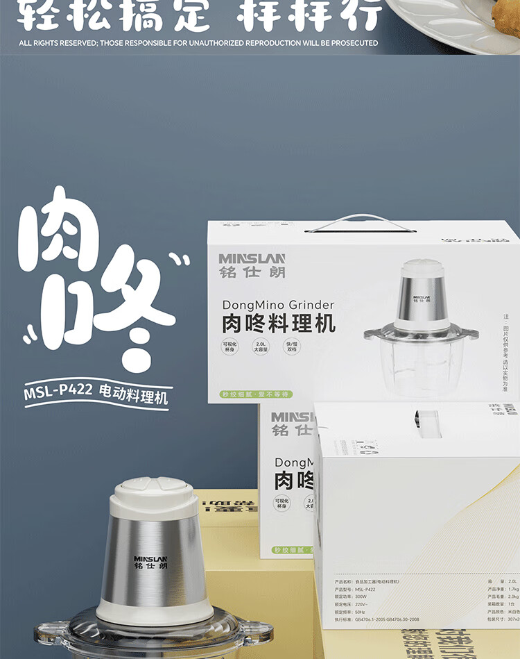 商品名称:铭仕朗(MINSLAN) 肉咚多功能电动绞肉机真空料理机包子机 MSL-P422(单位:台)
