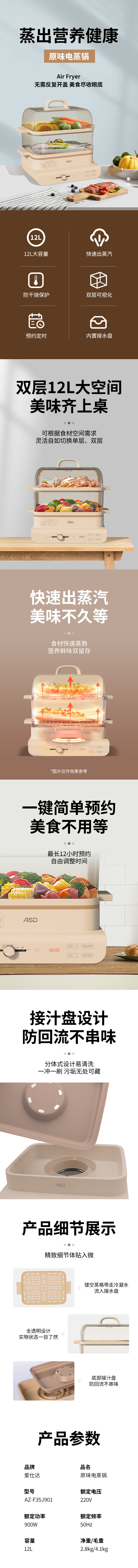 商品名称:爱仕达 原味电蒸锅 AZ-F35J901 功率:900W (单位:台)