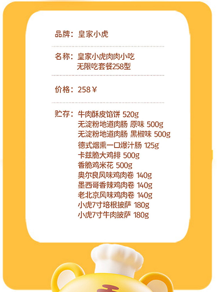 商品名称:皇家小虎 肉肉无限吃 3425g 258型(单位:份)