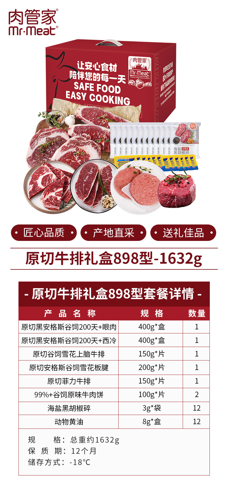 商品名称:肉管家 肉管家原切牛排礼盒 1632g 898型(单位:份)