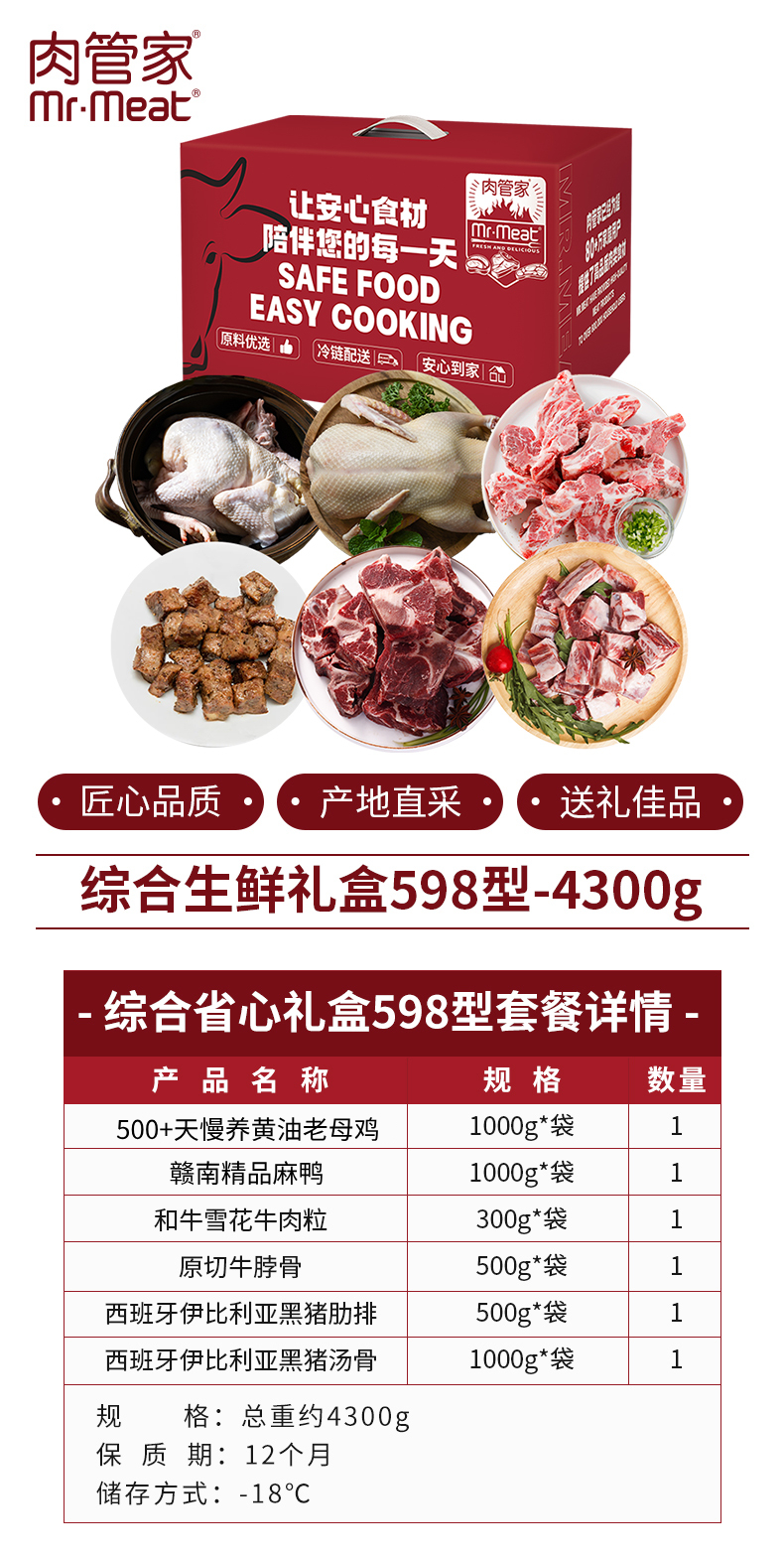 商品名称:肉管家 综合生鲜礼盒 4300g 598型(单位:份)