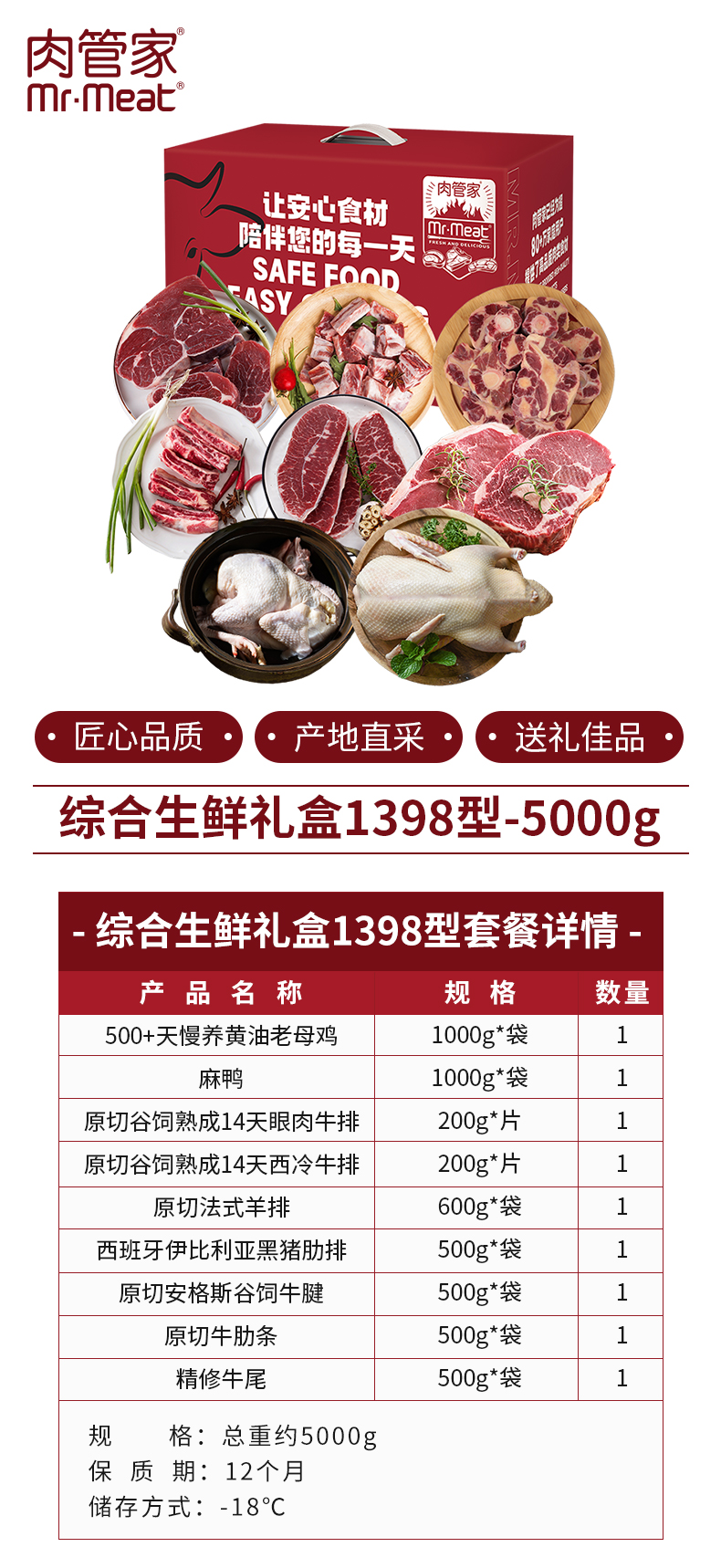 商品名称:肉管家 综合生鲜礼盒 5000g 1398型(单位:份)